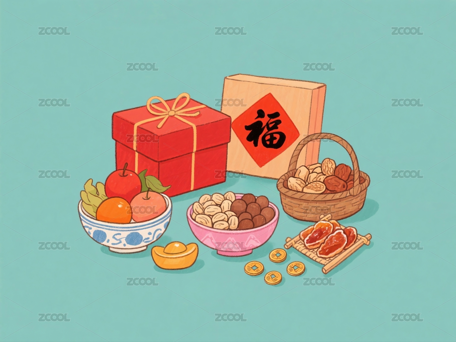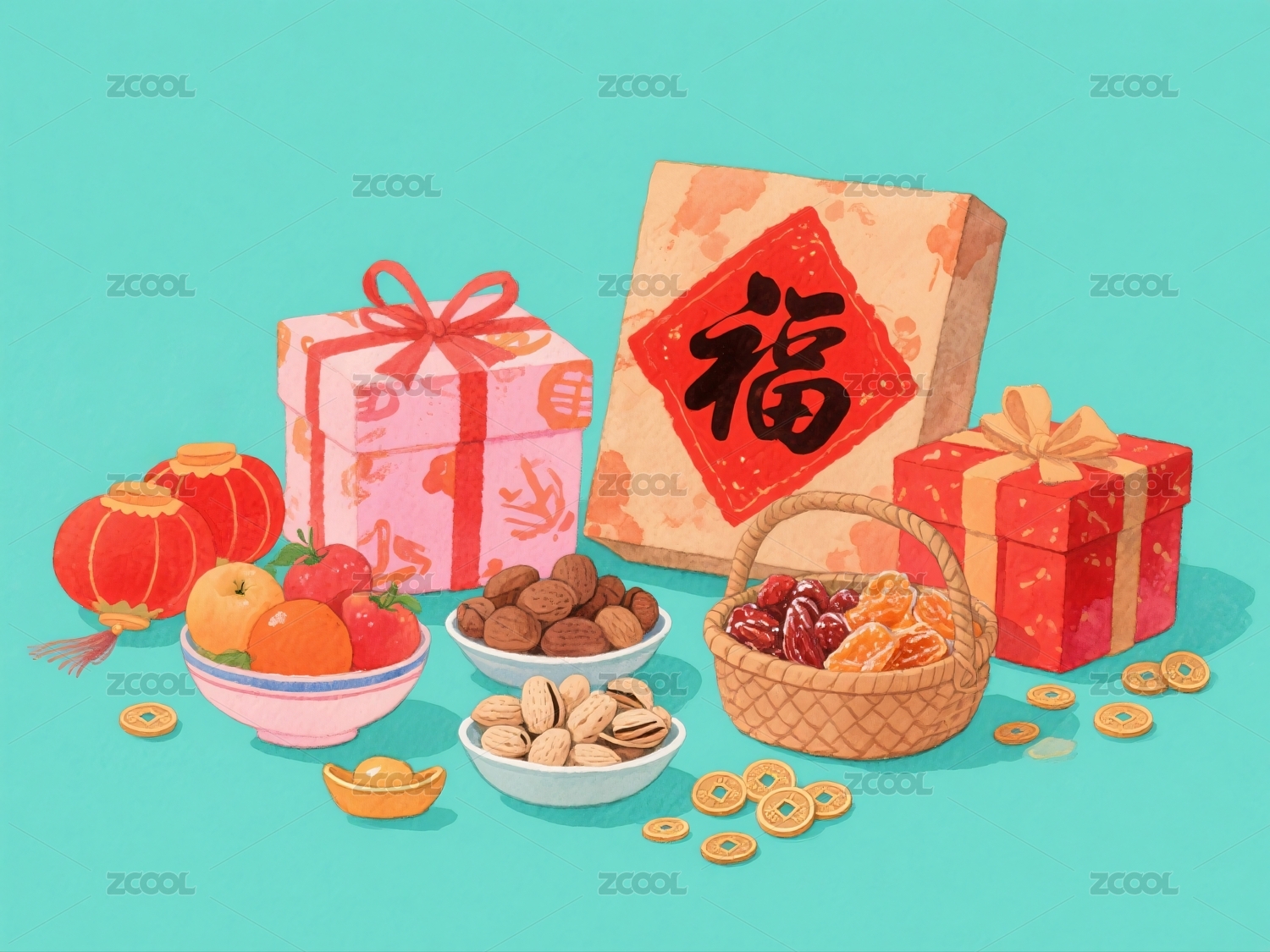 喜庆,传统,装饰,红色,摆放,庆祝,节日,新年,福字,礼物