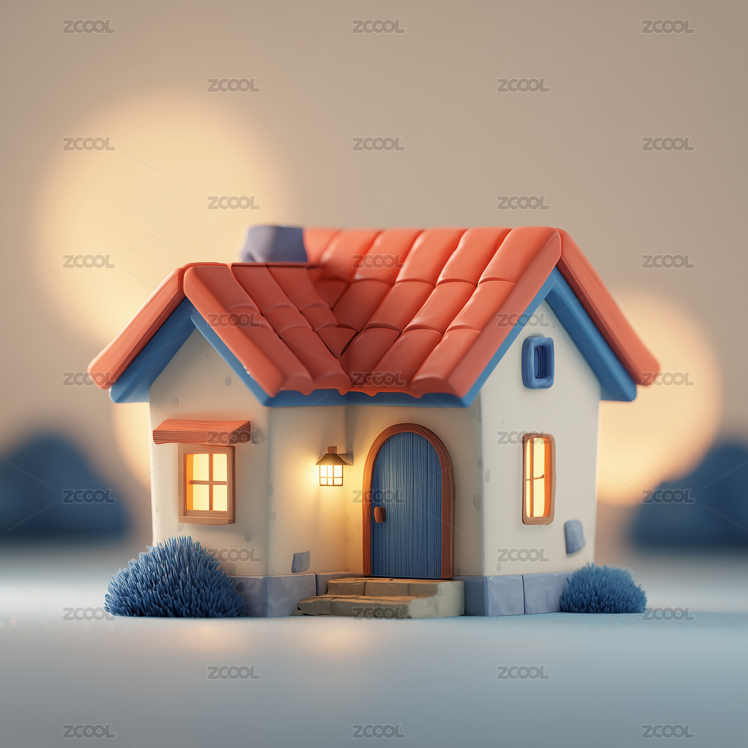 小屋,房屋,红色,屋顶,蓝色,墙壁,几何,简化,设计,光滑