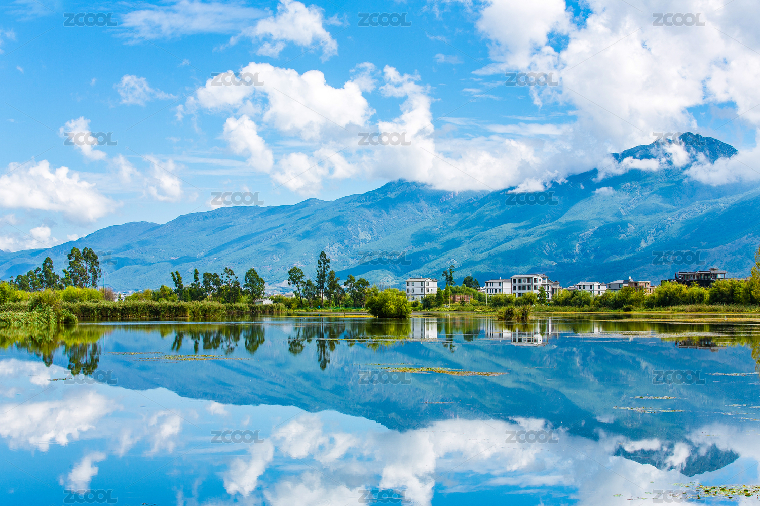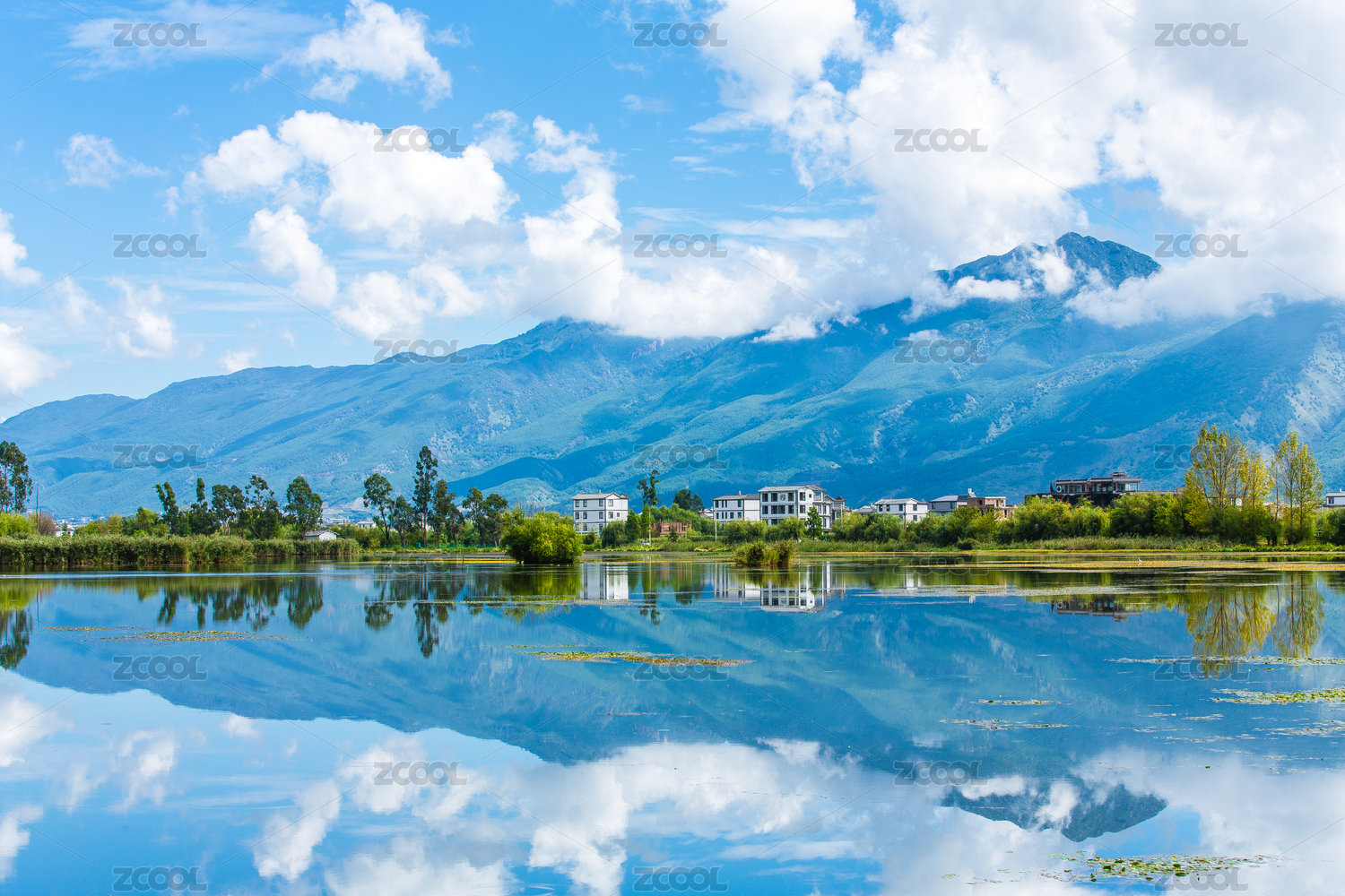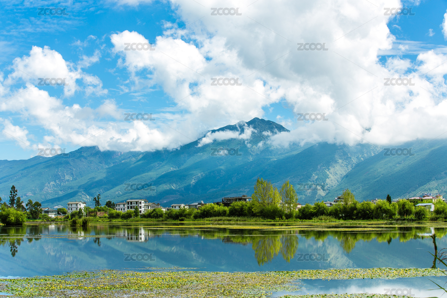 云南省大理三圣岛洱海生态廊道旁的湿地公园