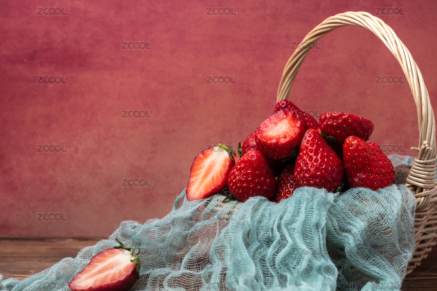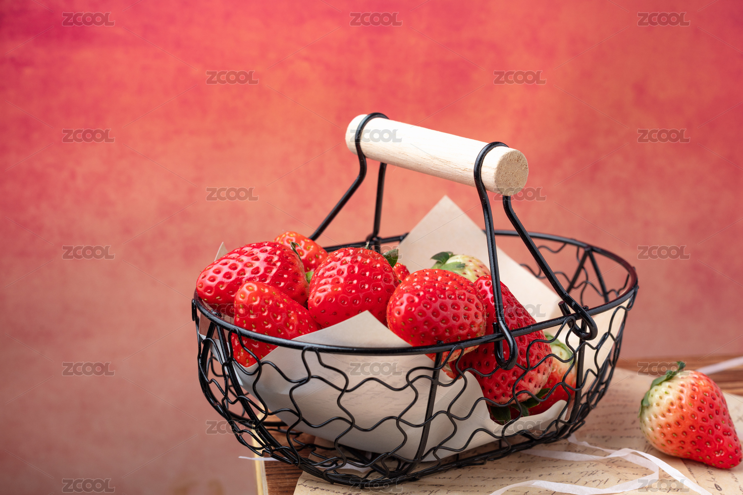红颜草莓,草莓,新鲜,果实,复古纸,篮子,红色,绿色,果香,维生素