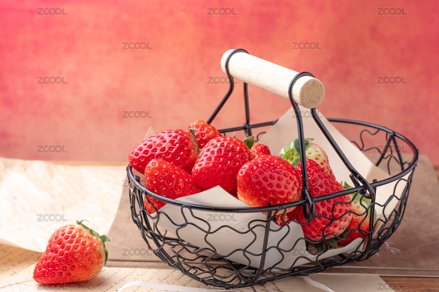 红颜草莓,草莓,新鲜,果实,复古纸,篮子,红色,绿色,果香,维生素