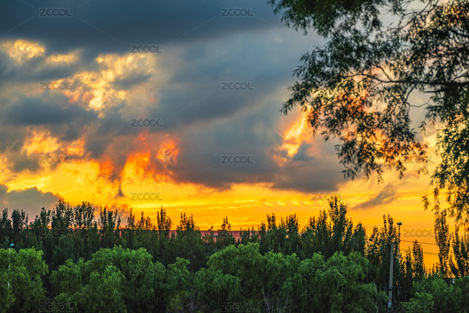 中国内蒙古自治区大兴安岭加格达奇区北极湖白桦与晚霞