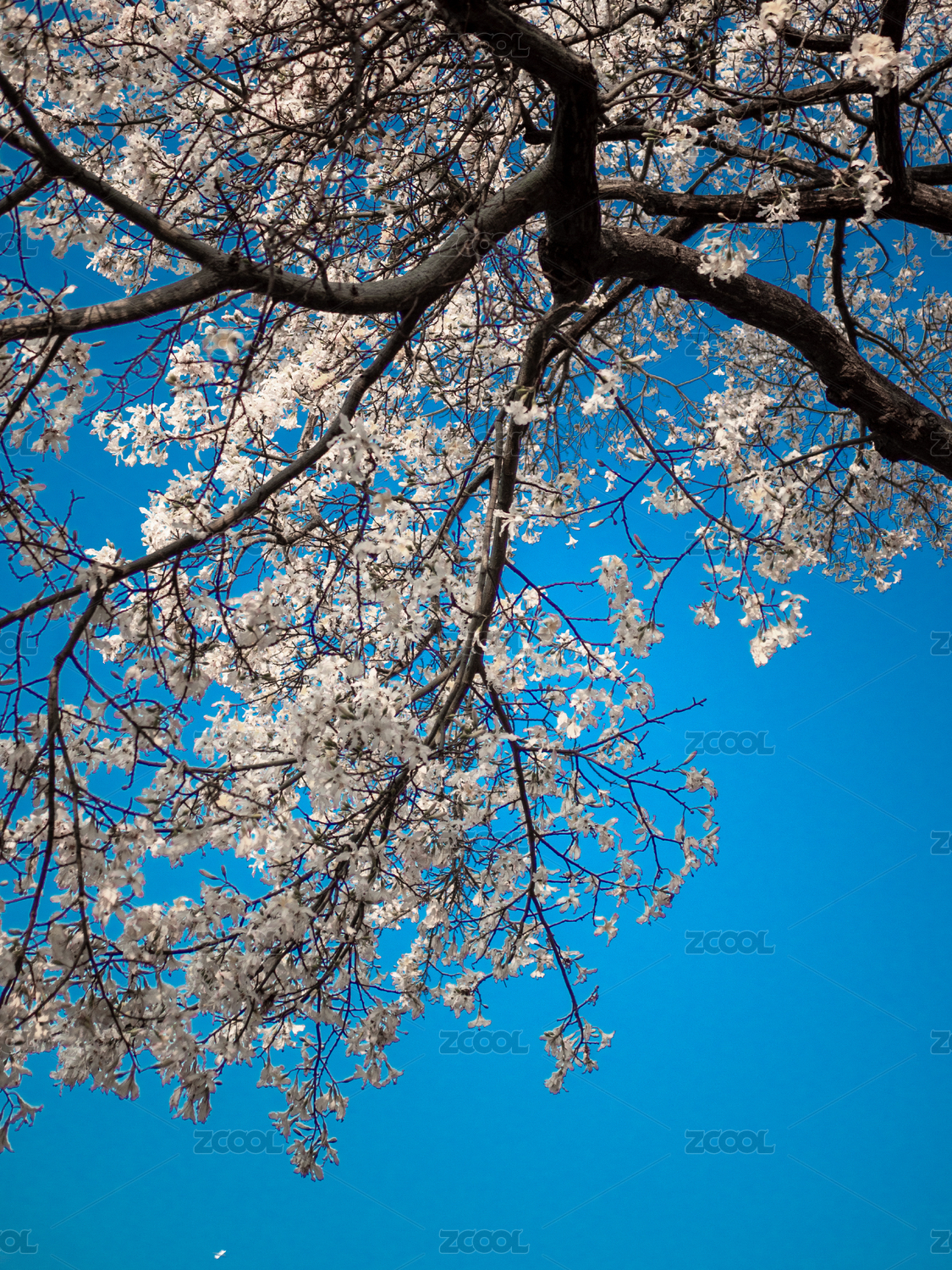 蓝天,树木,繁花,花朵,白色花朵,自然,景致,春季,盛开,树枝