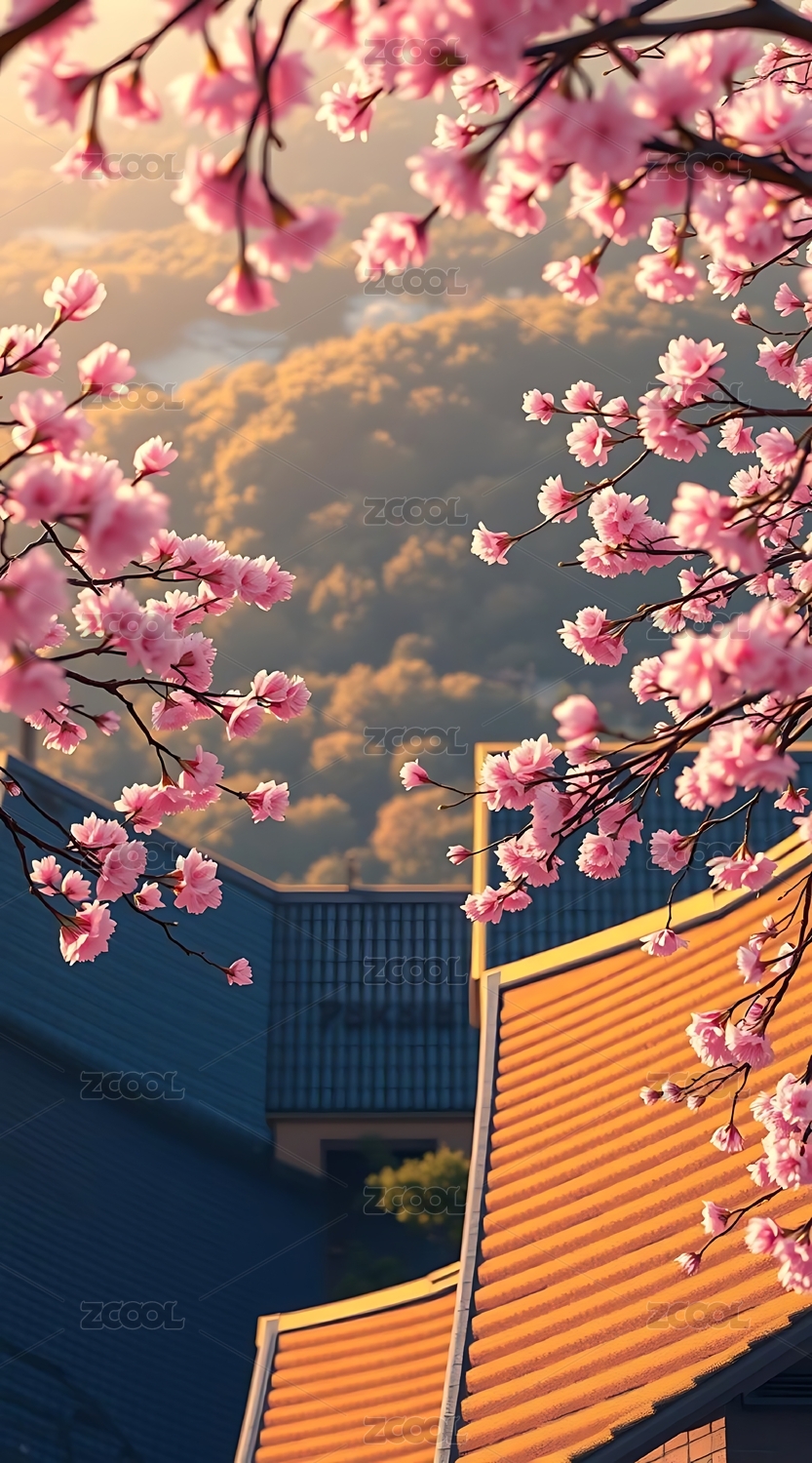 江苏南京玄武湖樱桃园樱花与传统建筑