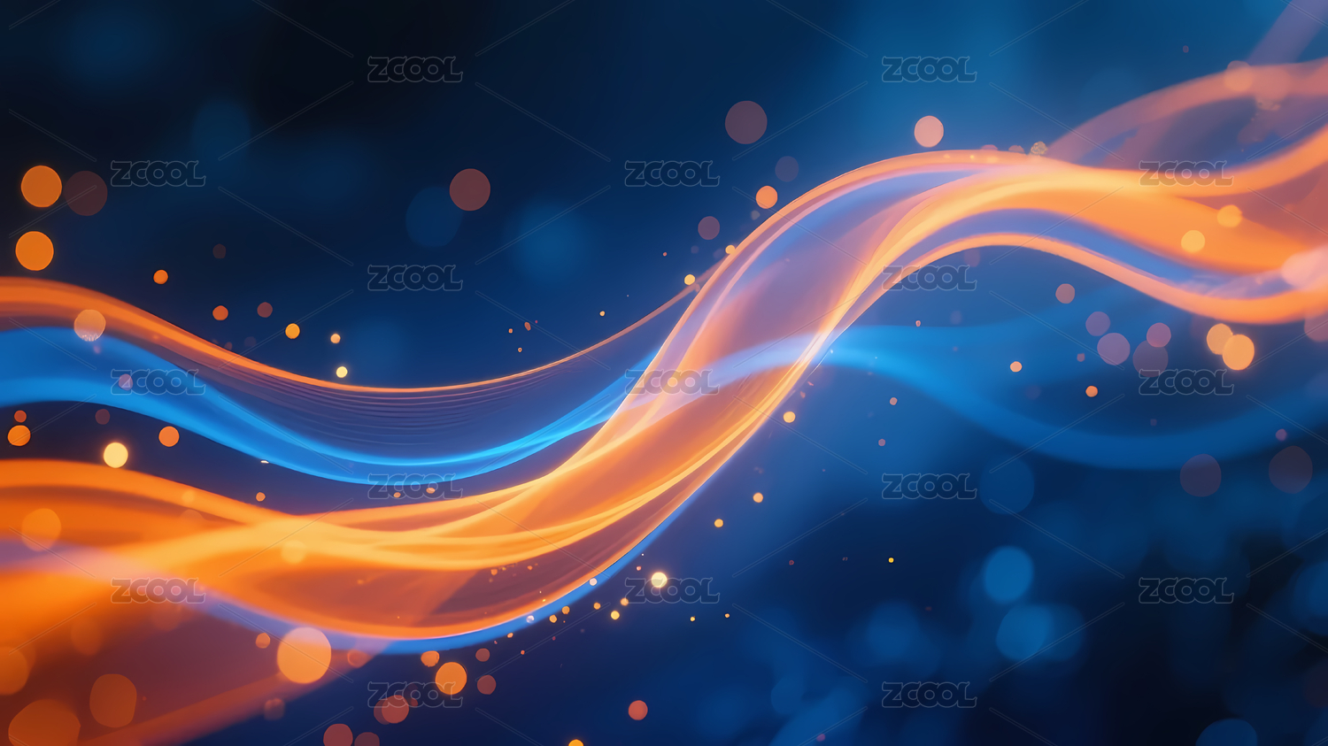 炫彩未来科技感3D蓝橙光流抽象风格背景