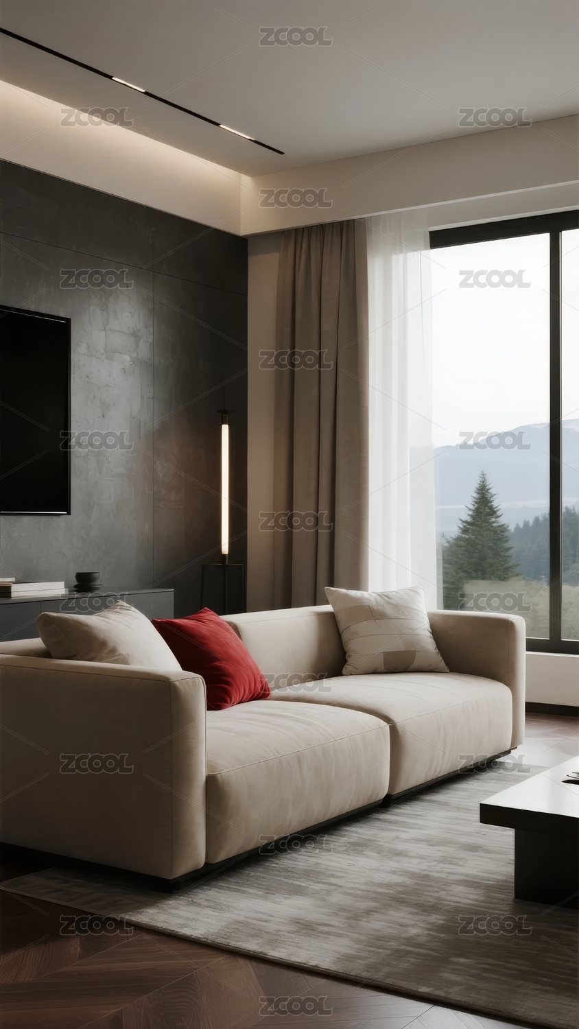 现代,简约,设计,装饰,室内,墙面,落地窗,客厅,沙发,茶几