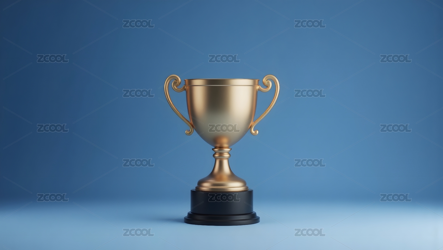 蓝色渐变背景下的金属奖杯