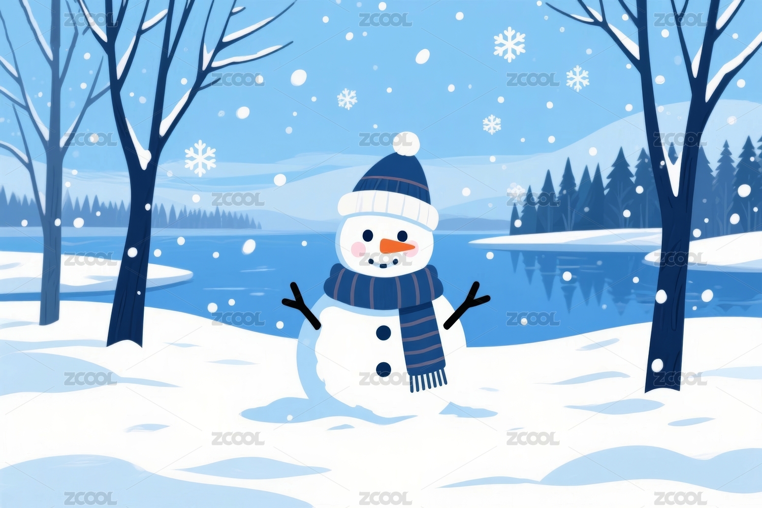 冬天森林里的雪地里一个围围巾的可爱雪人