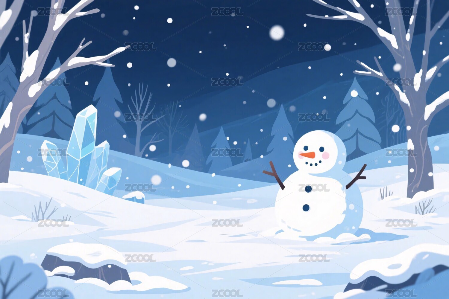 小寒大寒节气冬季一家人户外活动堆雪人插画