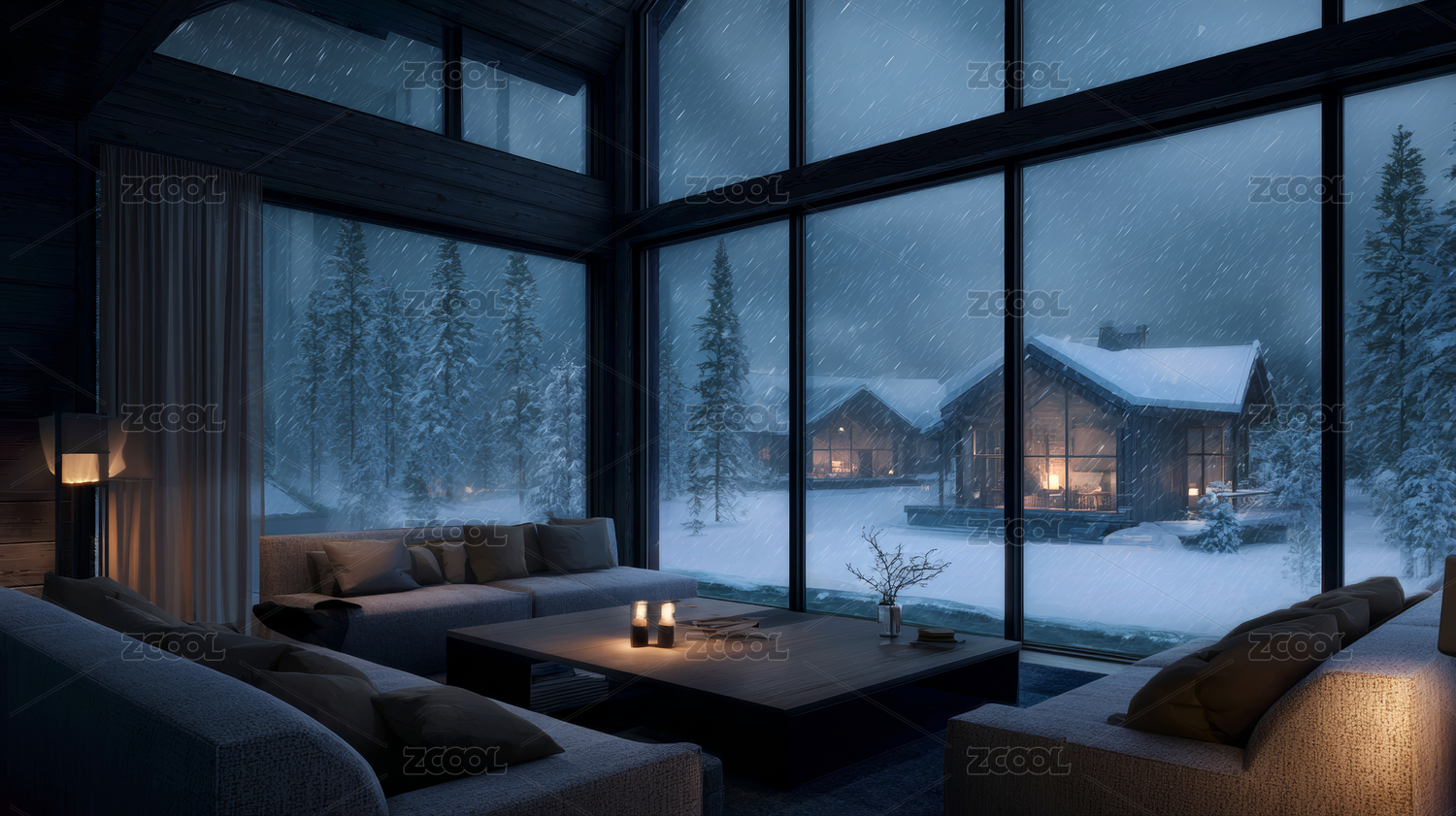 客厅,落地窗,雪景,现代,简约,温馨,木屋,别墅,室内,设计