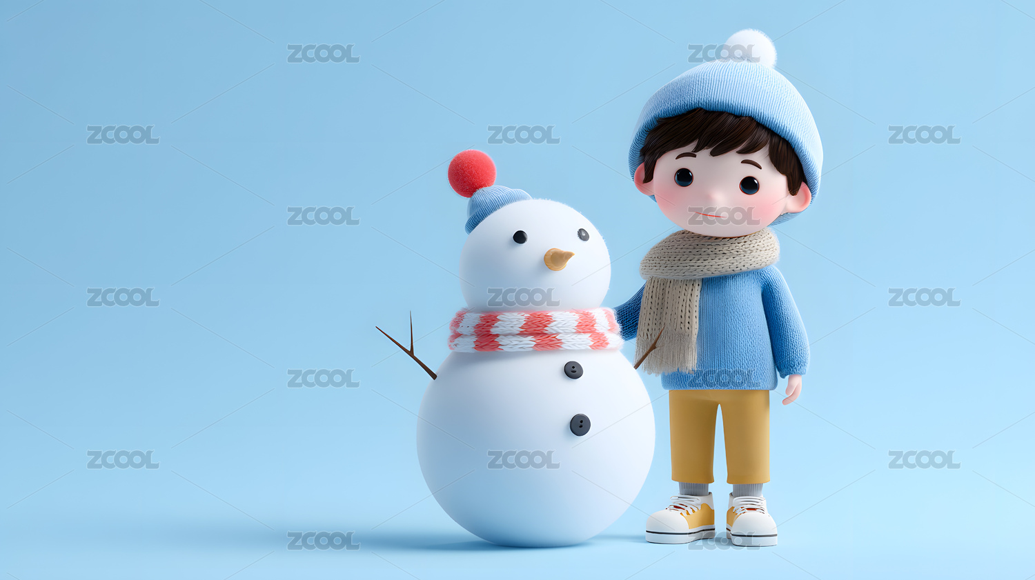 公仔,雪人,小孩,毛线帽,雪地,配色,构图,边缘,可爱,设计