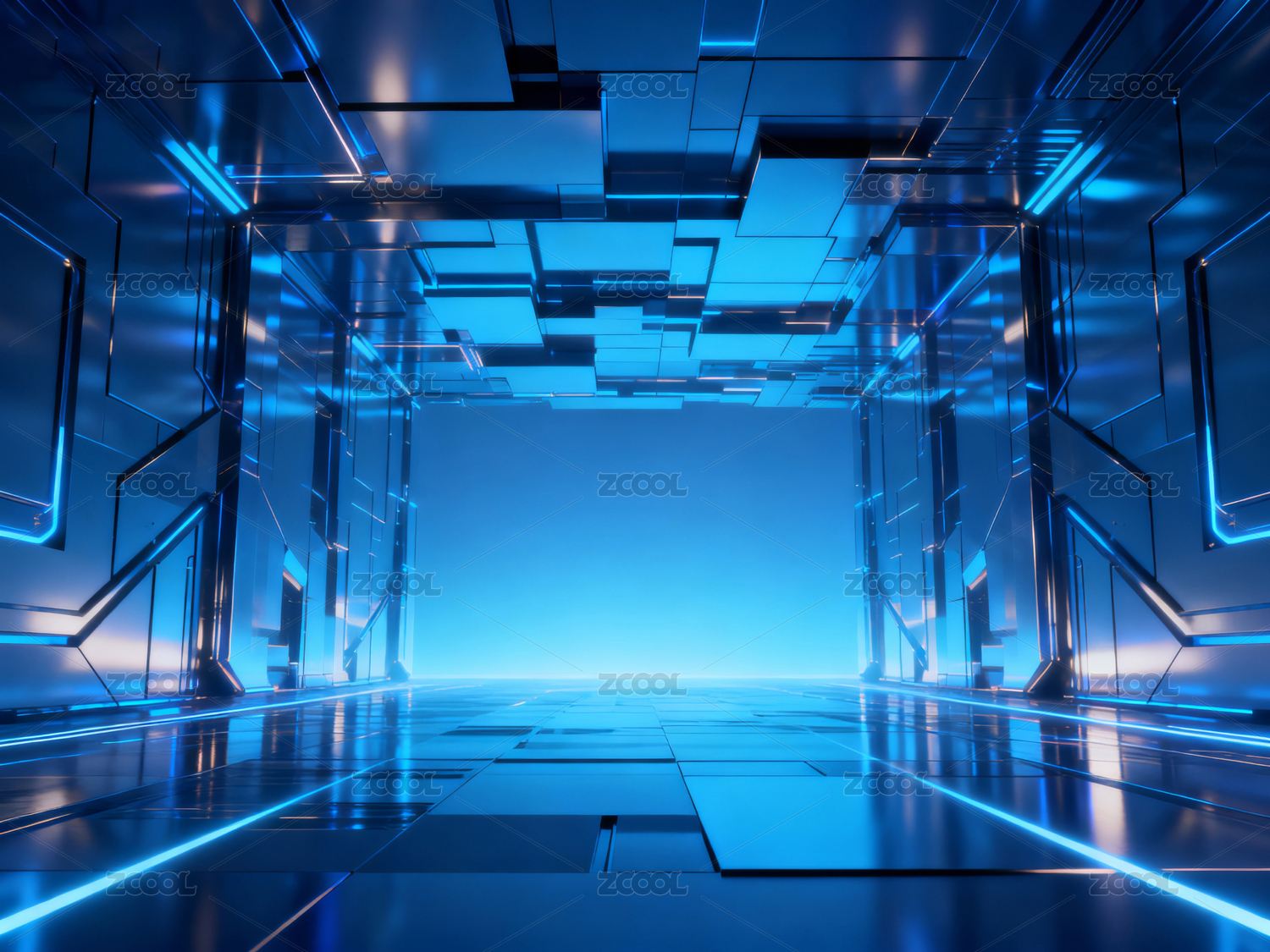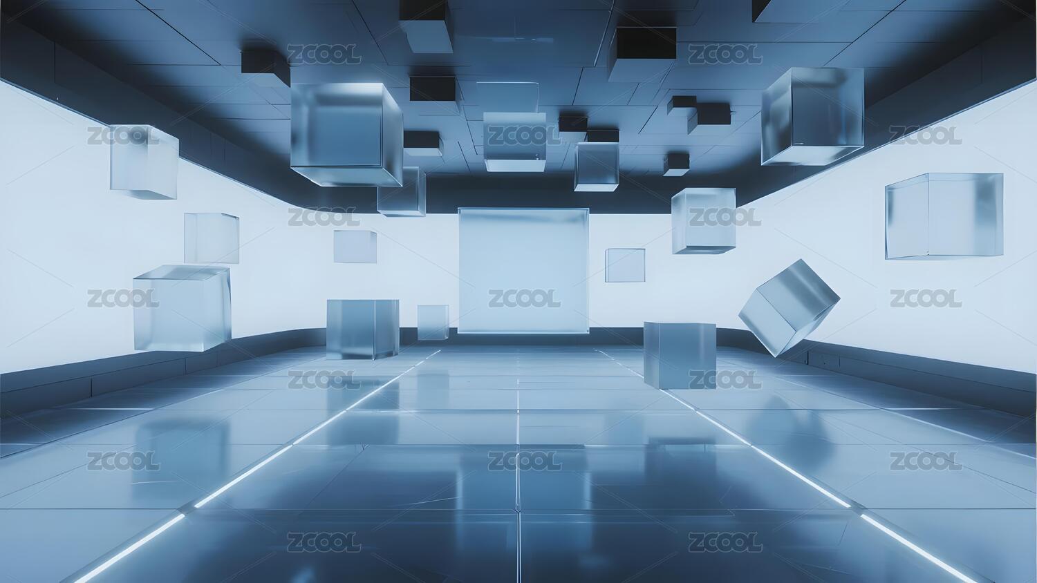 现代,设计,反射,抽象,空间,光线,室内,冷色调,透明,立方体