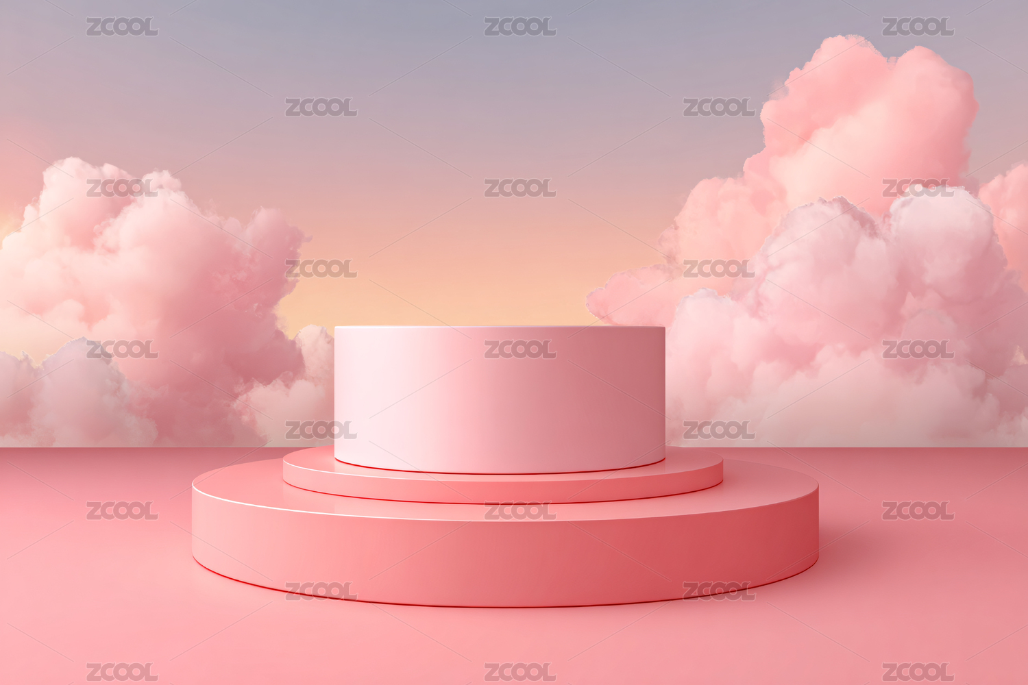 粉色云朵中的白色圆台