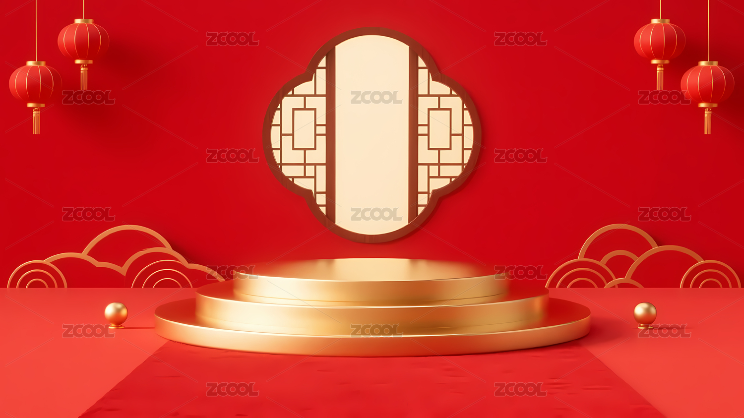 建筑,背景,窗棂,框架,红色,金色,剪纸,烟花,展示台,元素