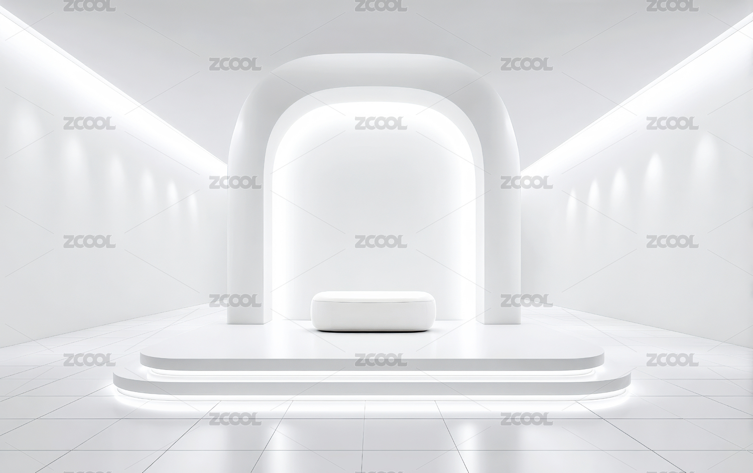 白色弧形通道中的悬浮平台