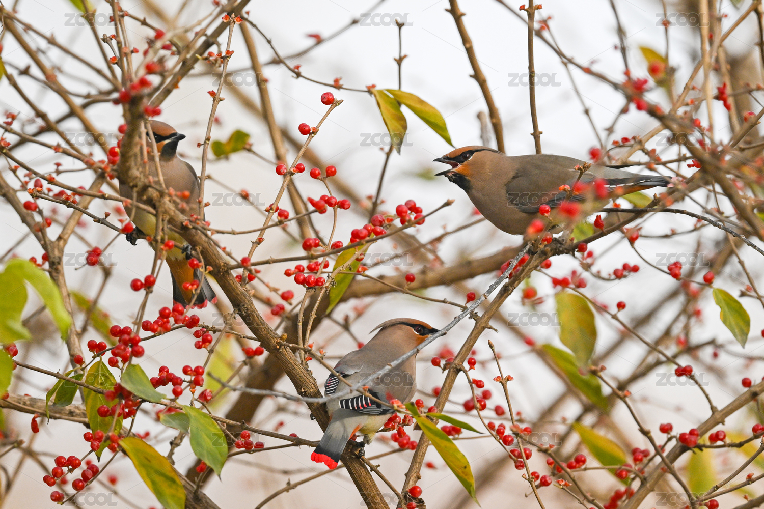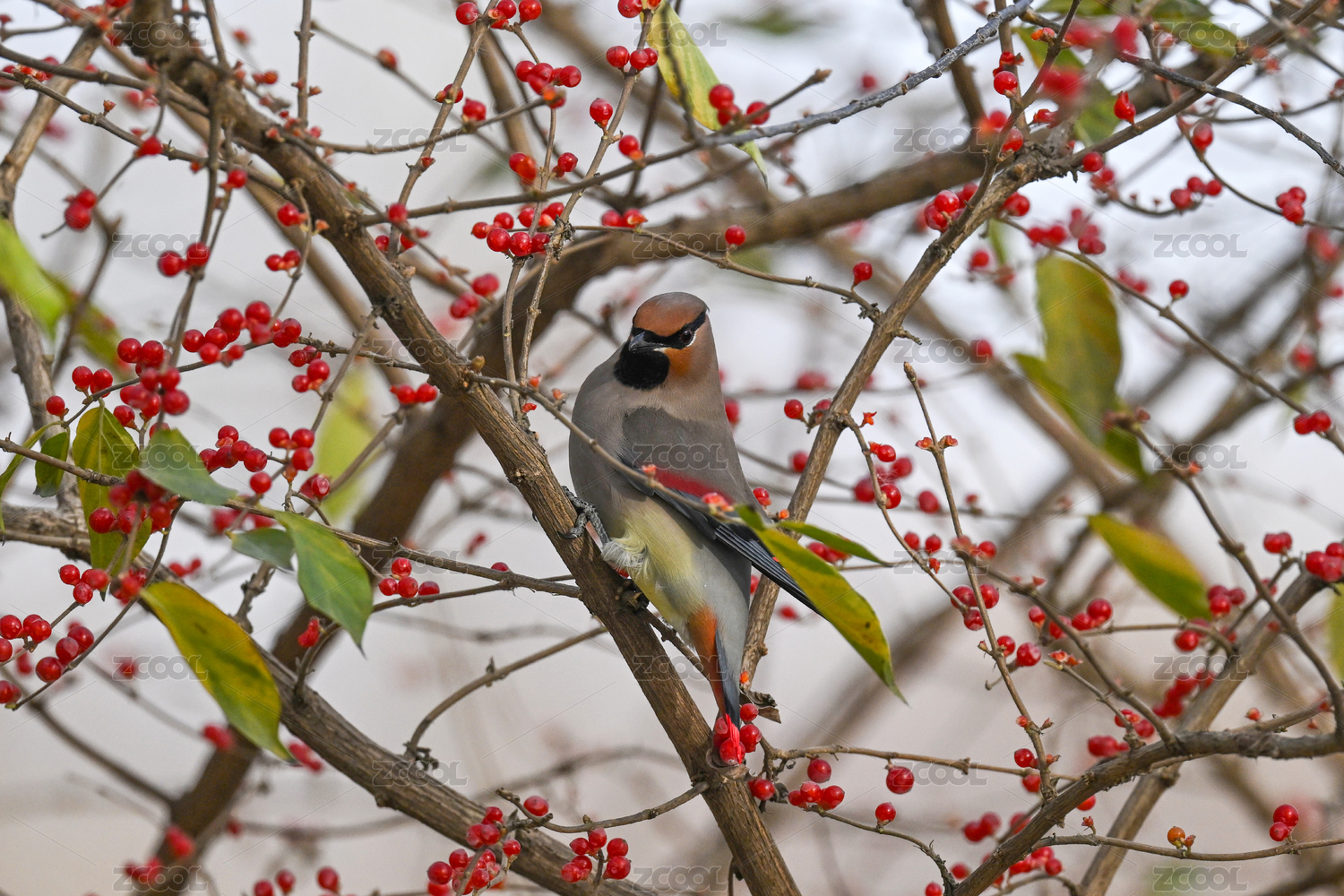 太平鸟,连雀,觅食,摘果,鸟,鸟类,自然,自然美,户外,忍冬树