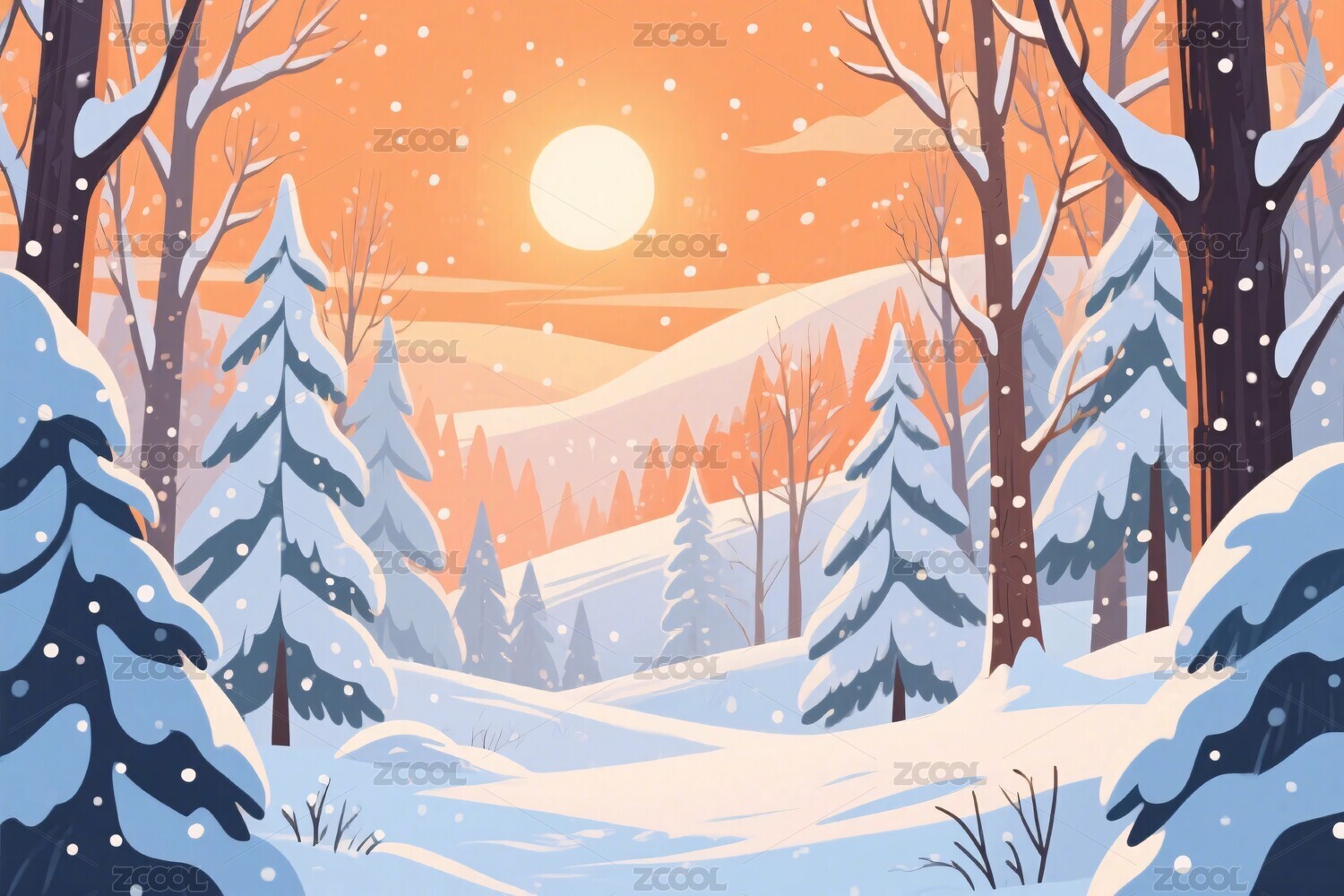 冬日雪景森林插画