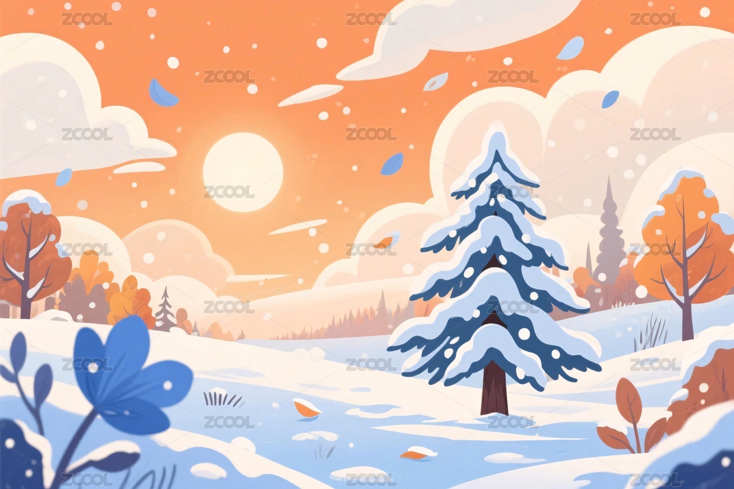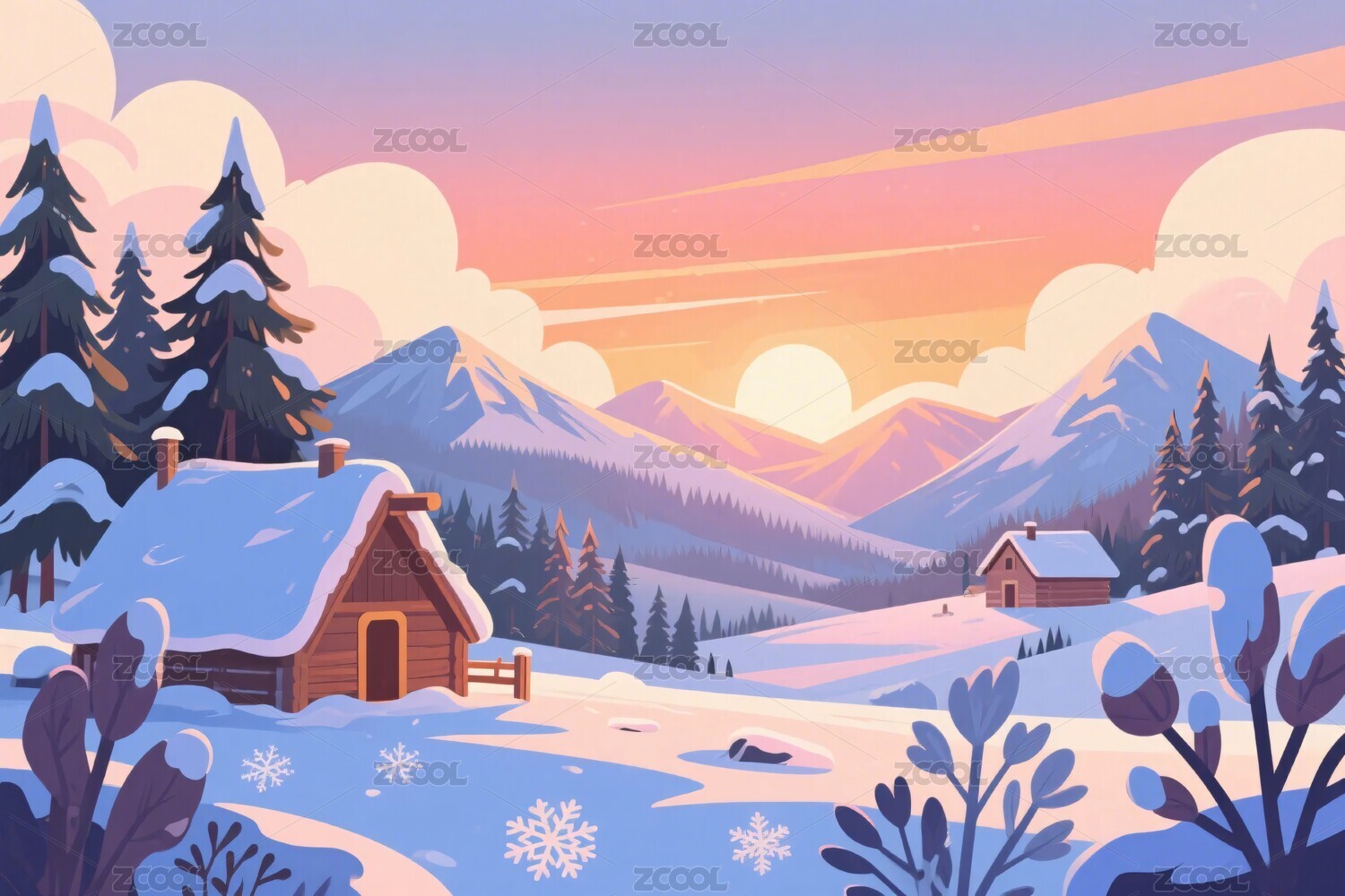 冬日雪景插画