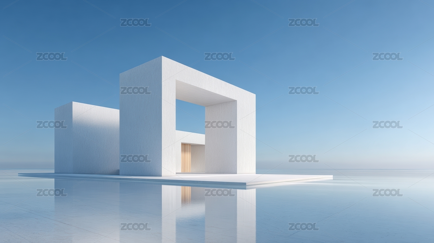 几何,设计,现代,蓝色,立方体,简约,宁静,天空,极简,镜面