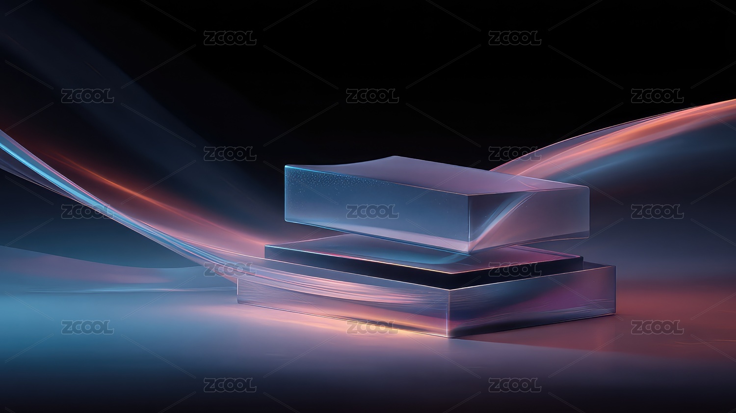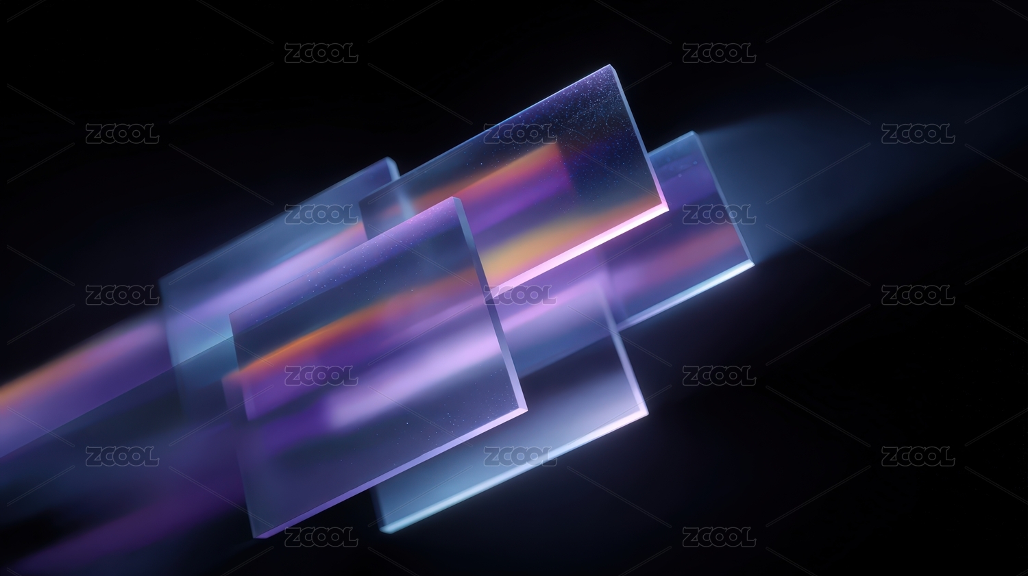 抽象, 紫色, 蓝色, 反射, 光影, 科技感,几何, 未来感, 黑色背景, 玻璃