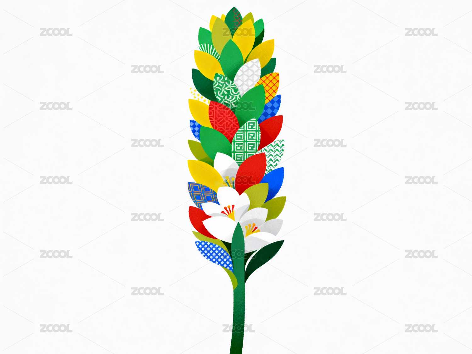 插画风格花朵花卉的抽象艺术