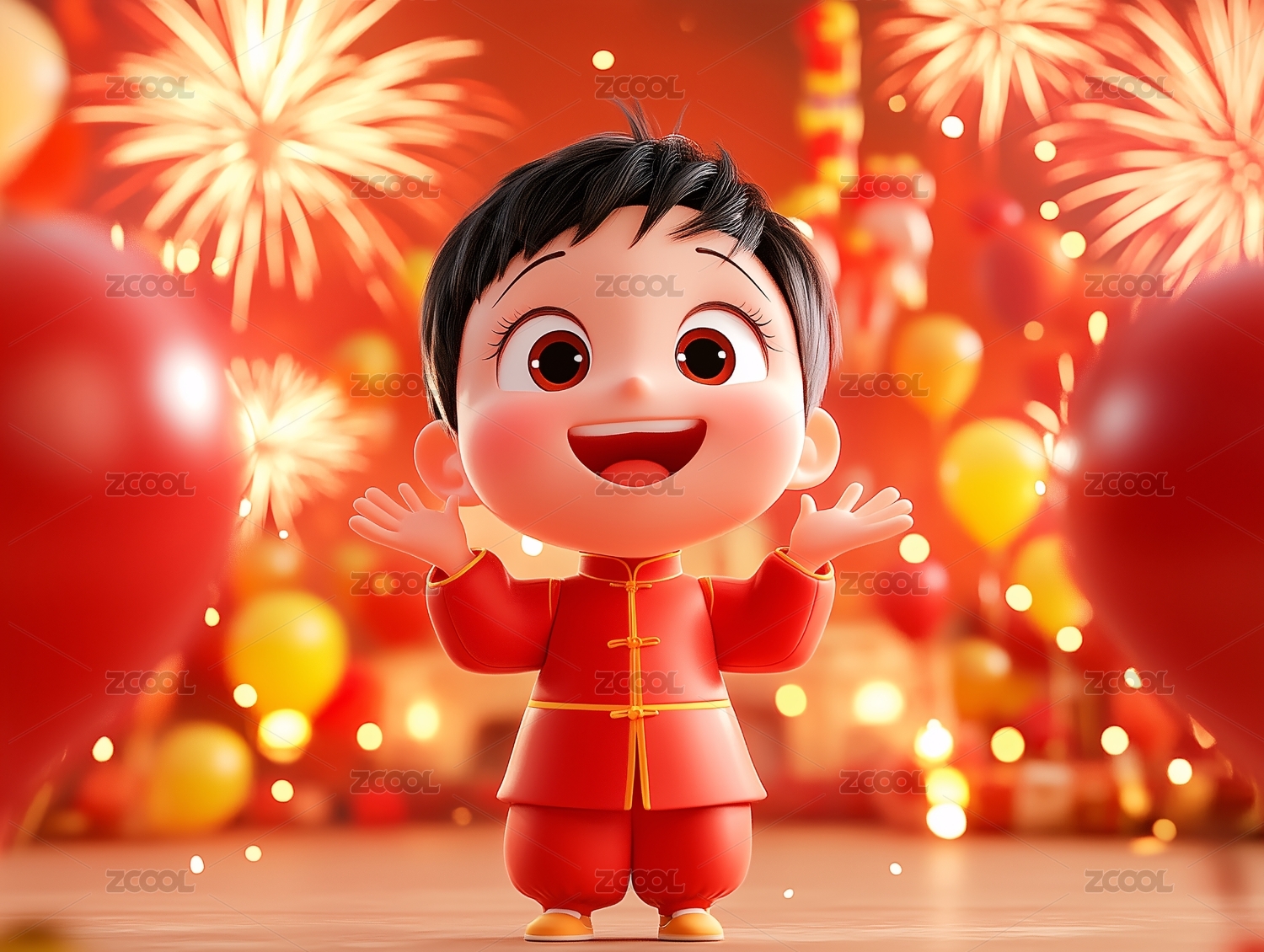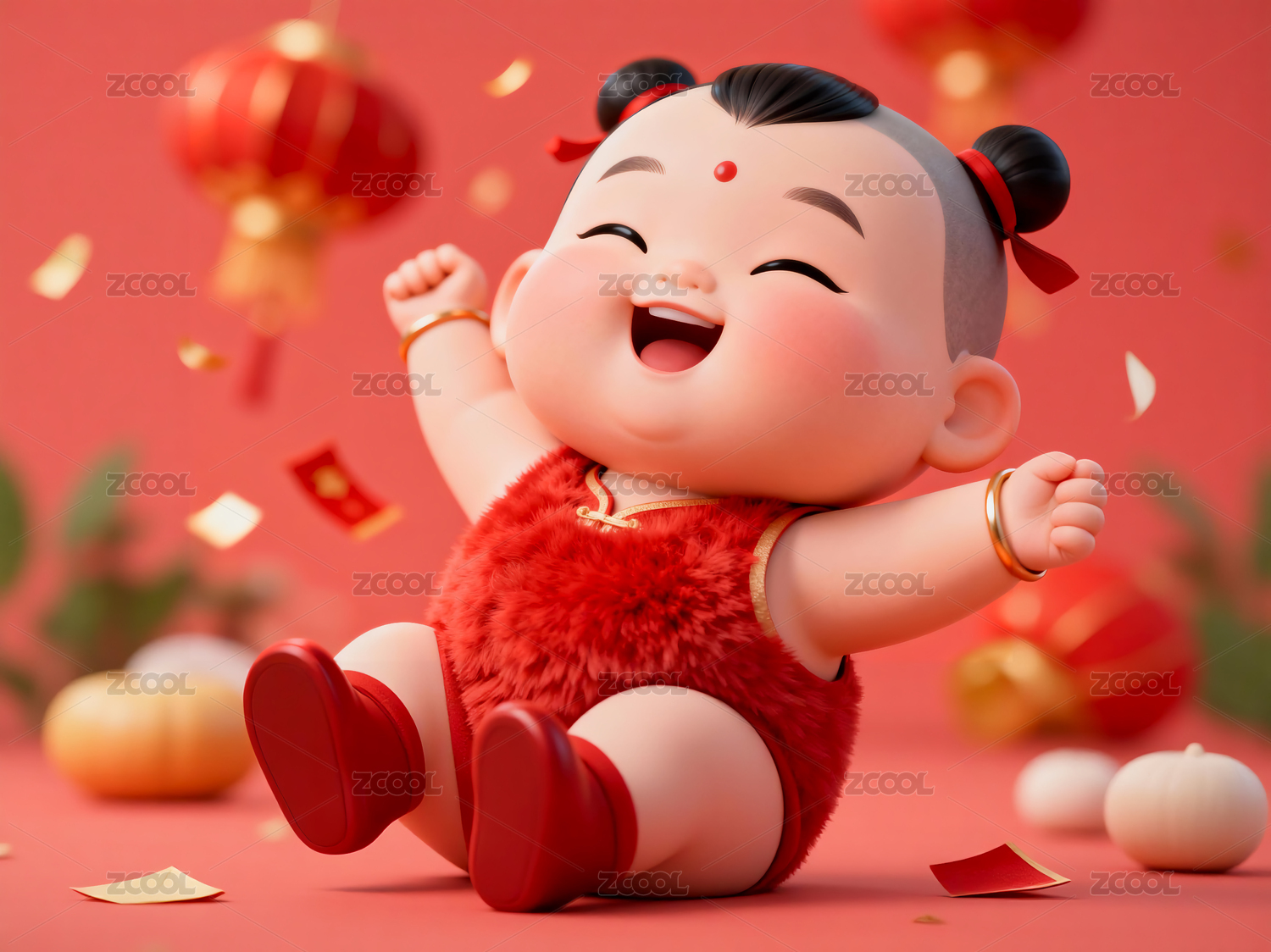 3D插画风迎春节新年的胖嘟嘟可爱卡通娃娃