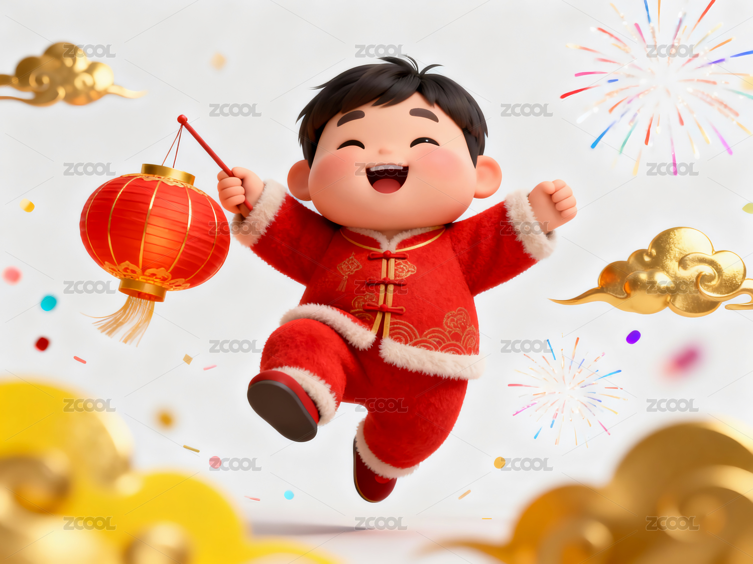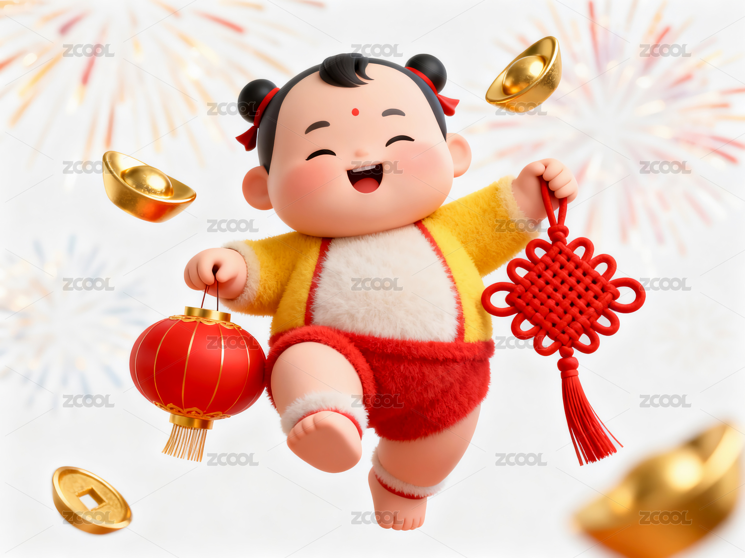 3D卡通过年庆祝新年的娃娃