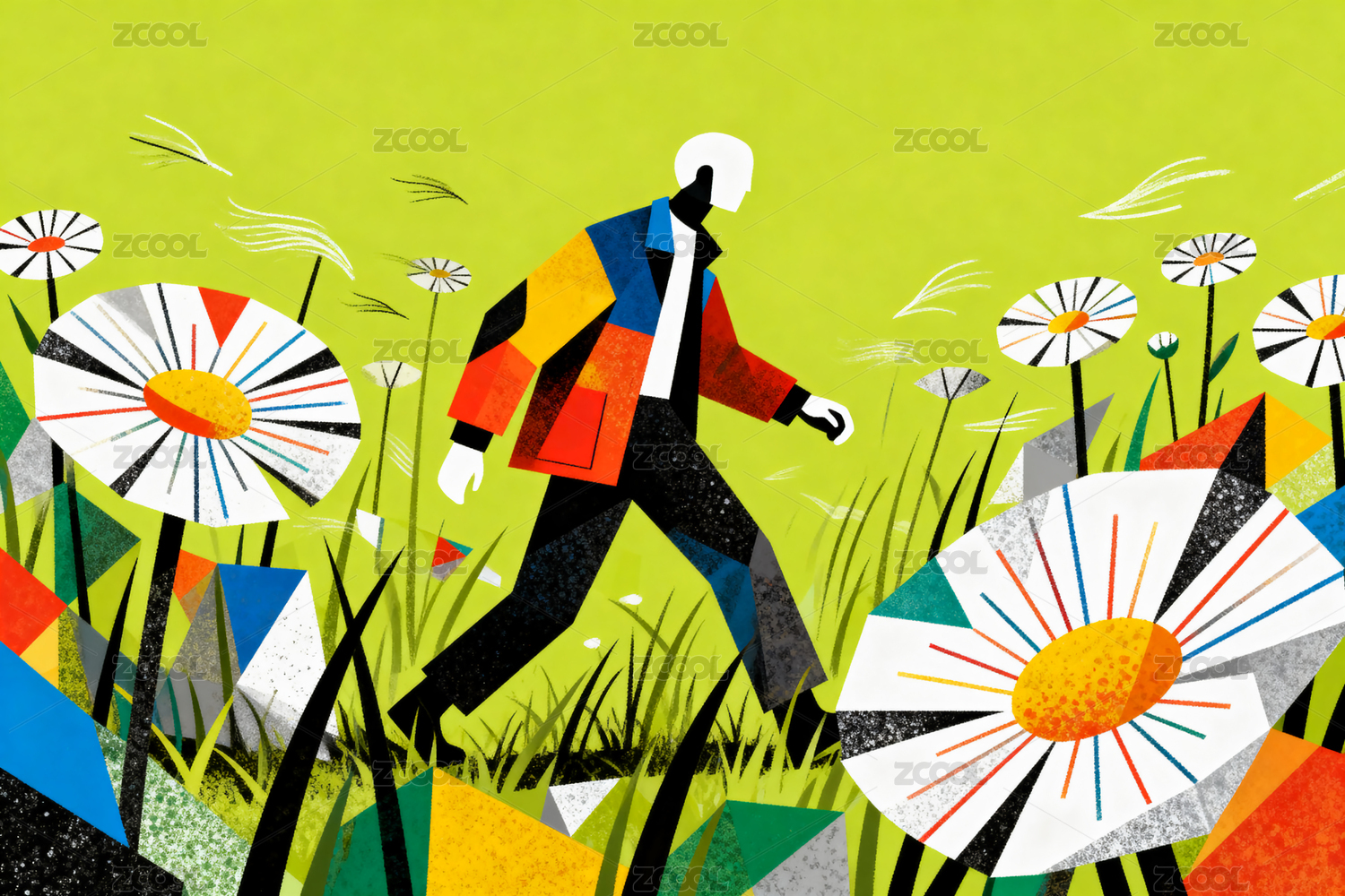 插画,艺术,绘画,超现实,抽象,人物,花海,花卉,创意,想象力