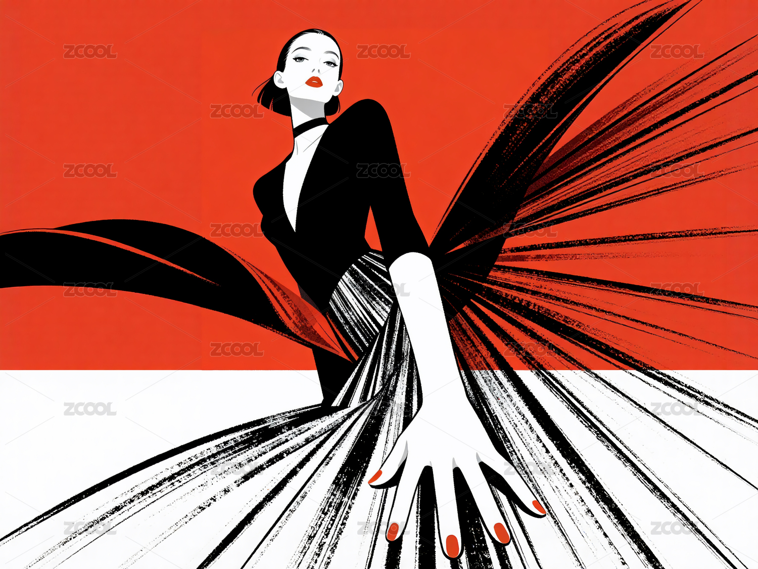 时尚摩登美女模特的插画艺术