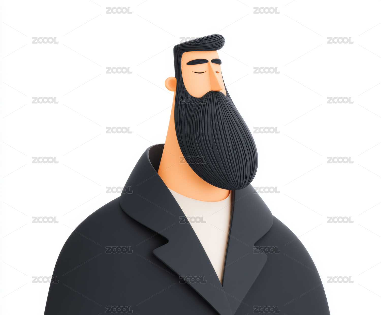 黑色男士时尚肖像大头照矢量扁平化设计背景