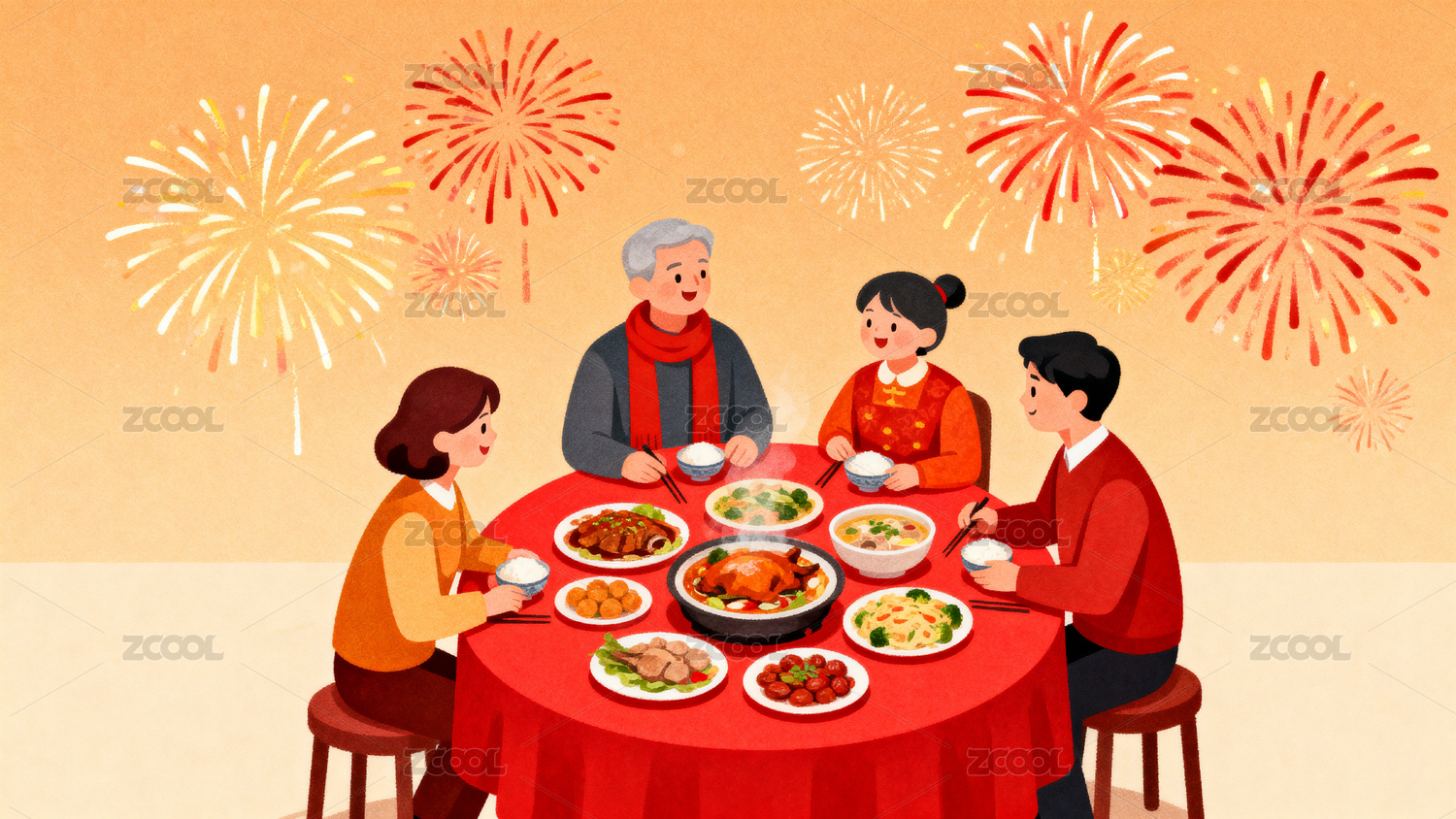 家庭除夕夜团圆饭