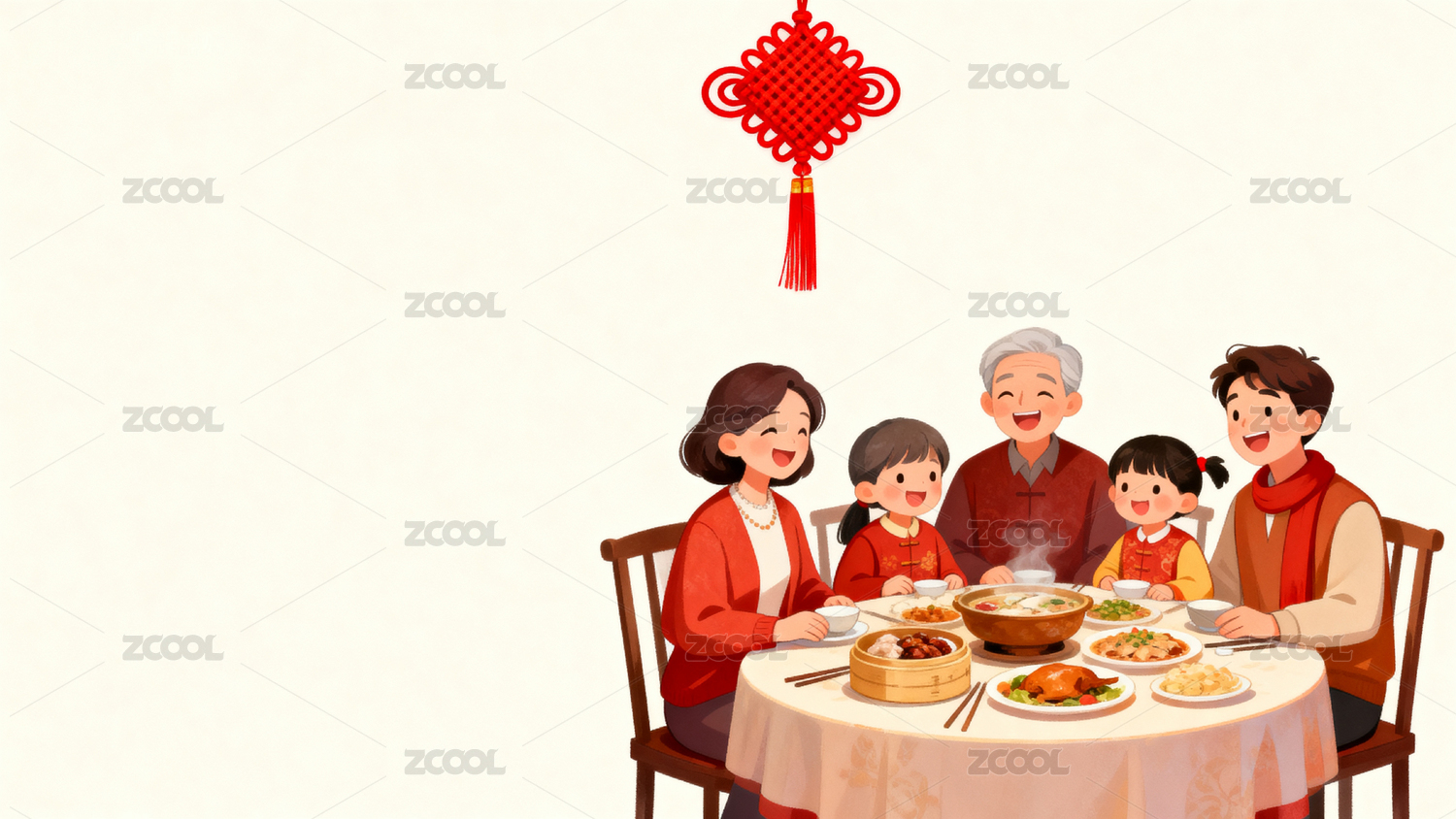 春节年夜饭的一家人团聚插画