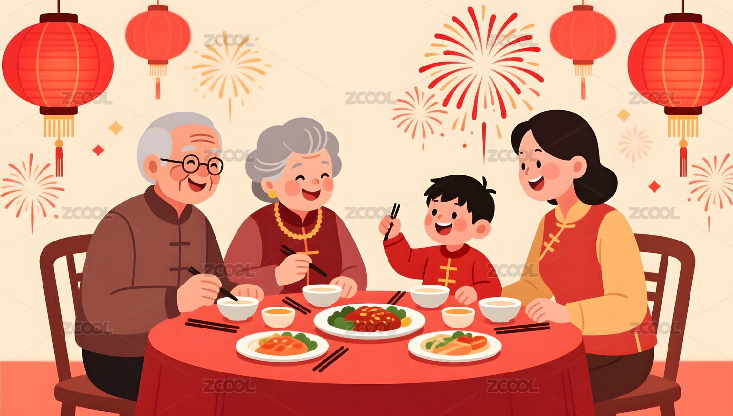 春节团圆饭温馨场景