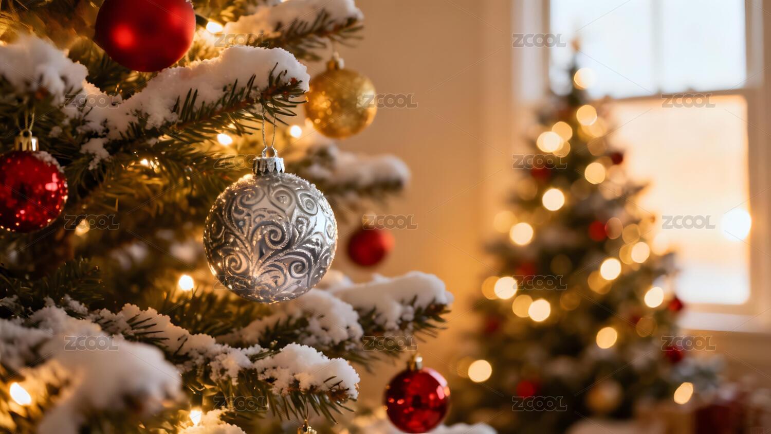 背景,装饰,节日,雪花,红色,圣诞树,绿色,金色,细节,灯光
