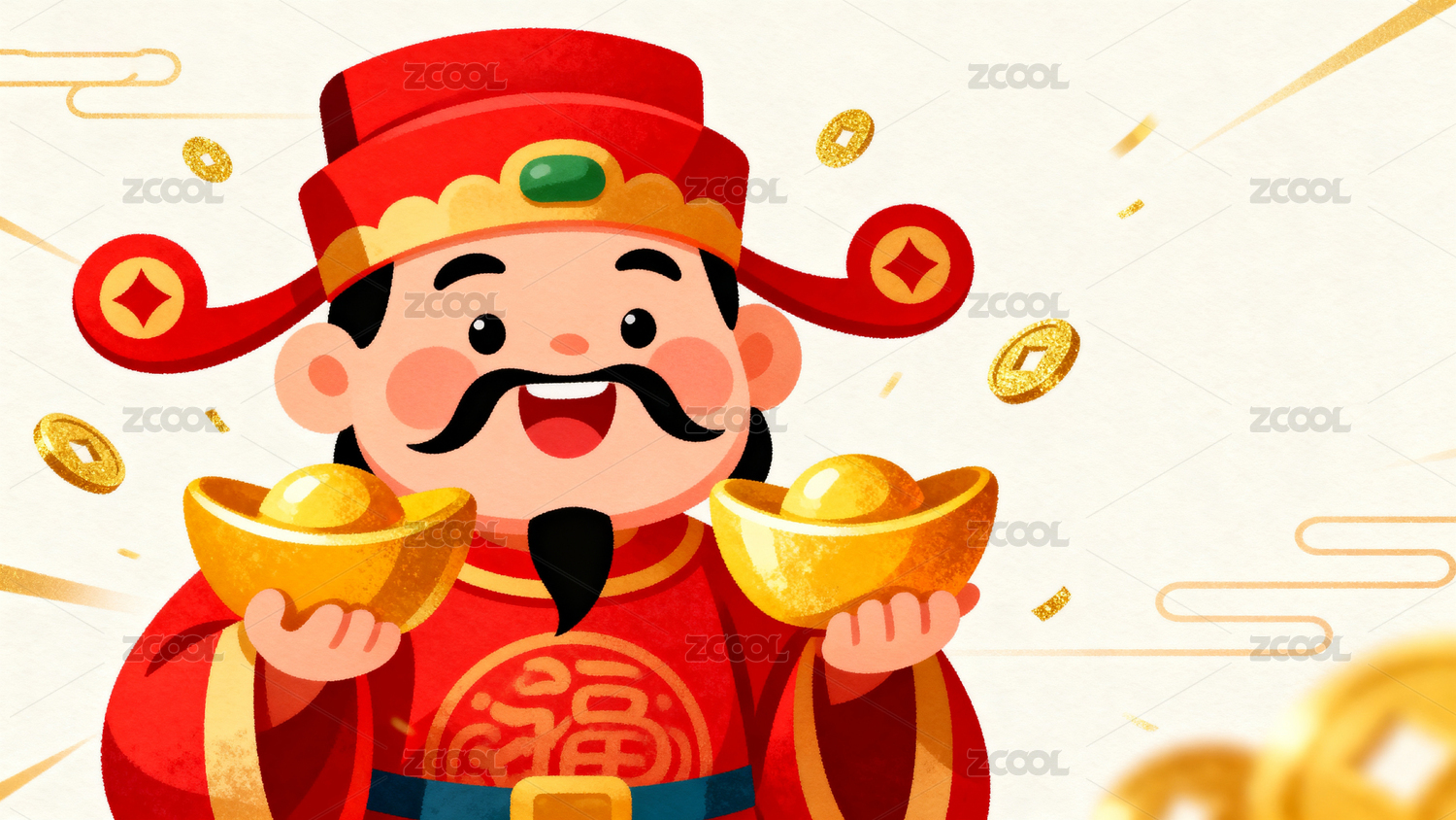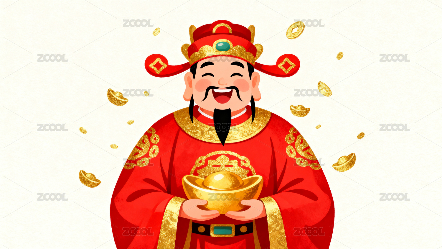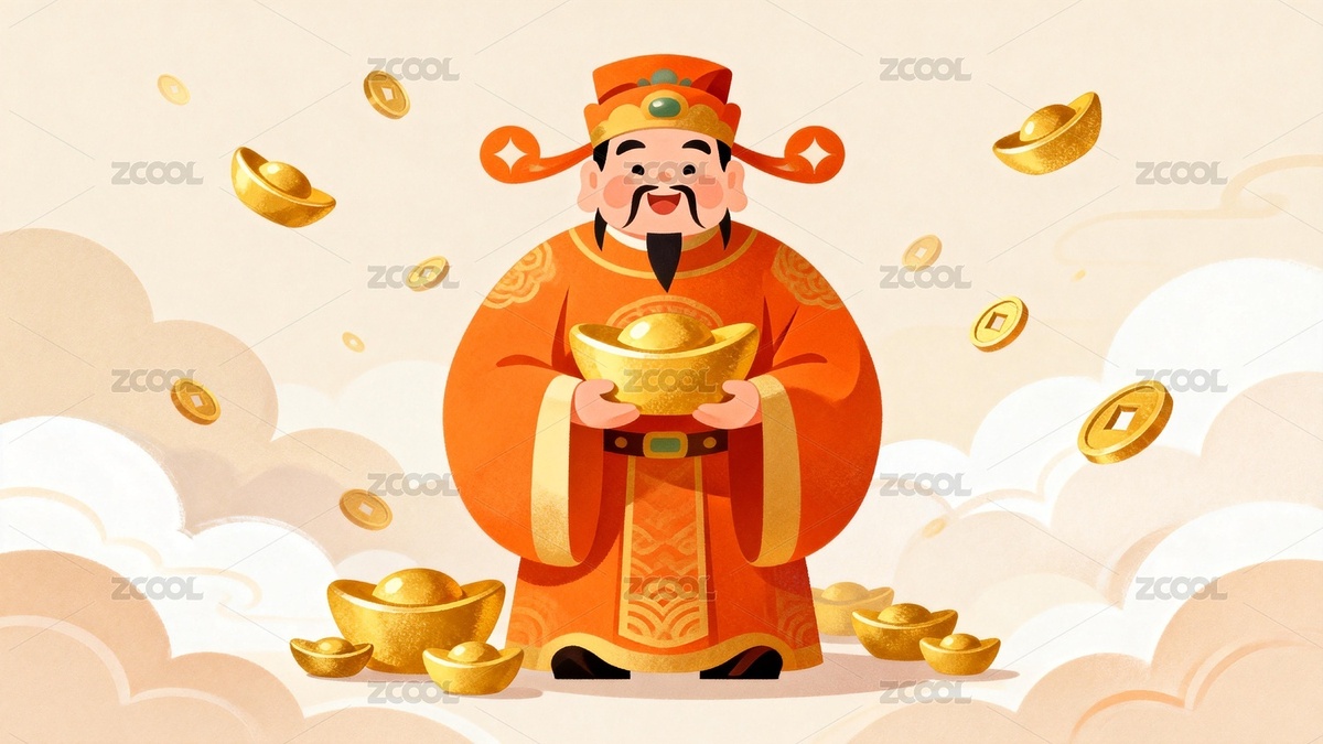 财神爷手持金币喜庆图案