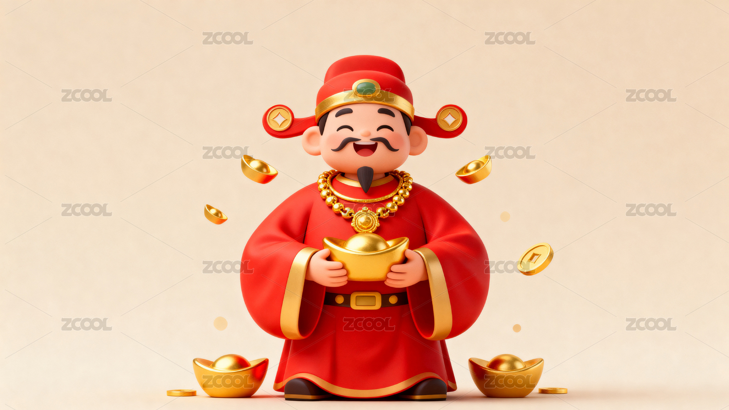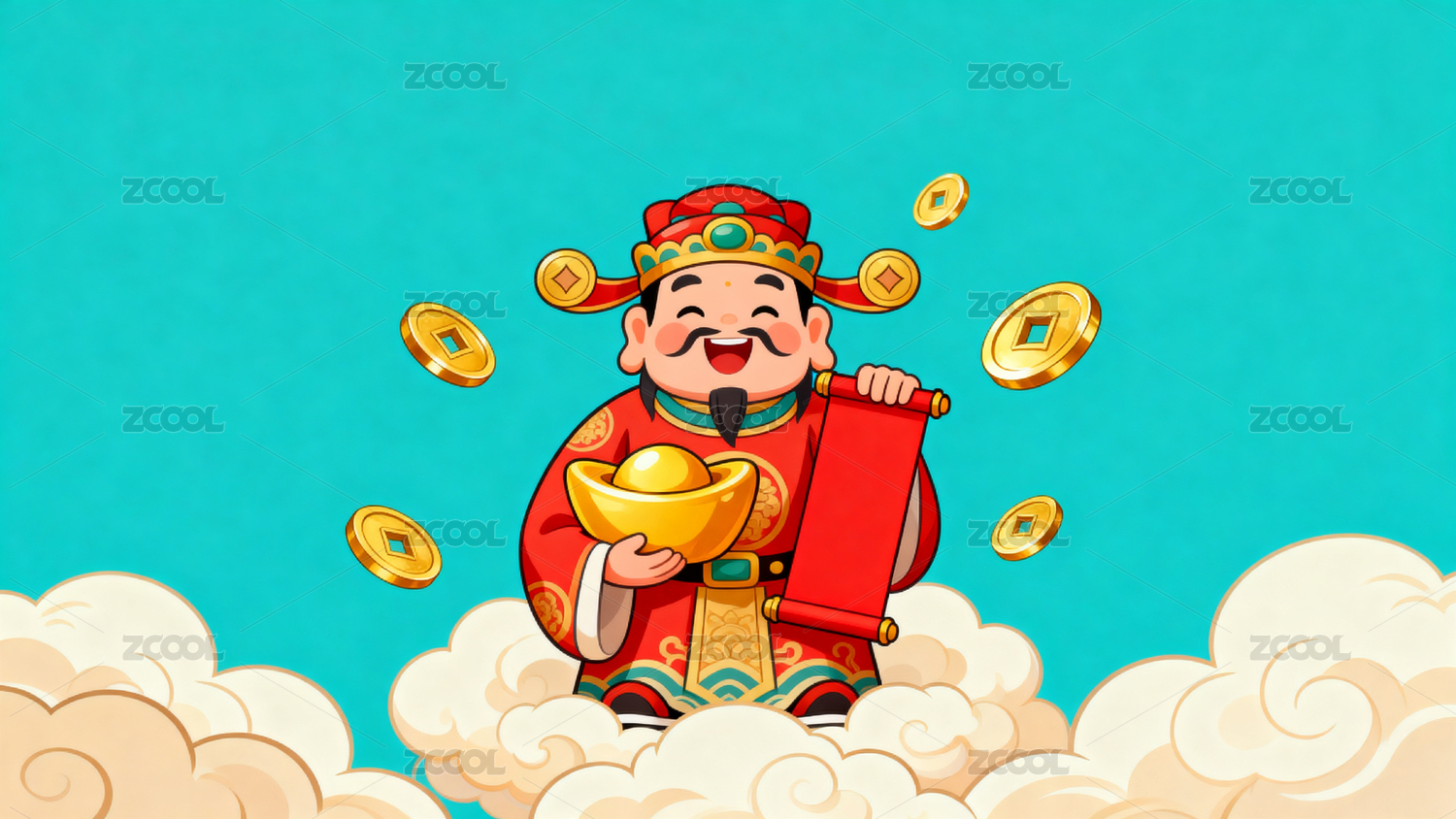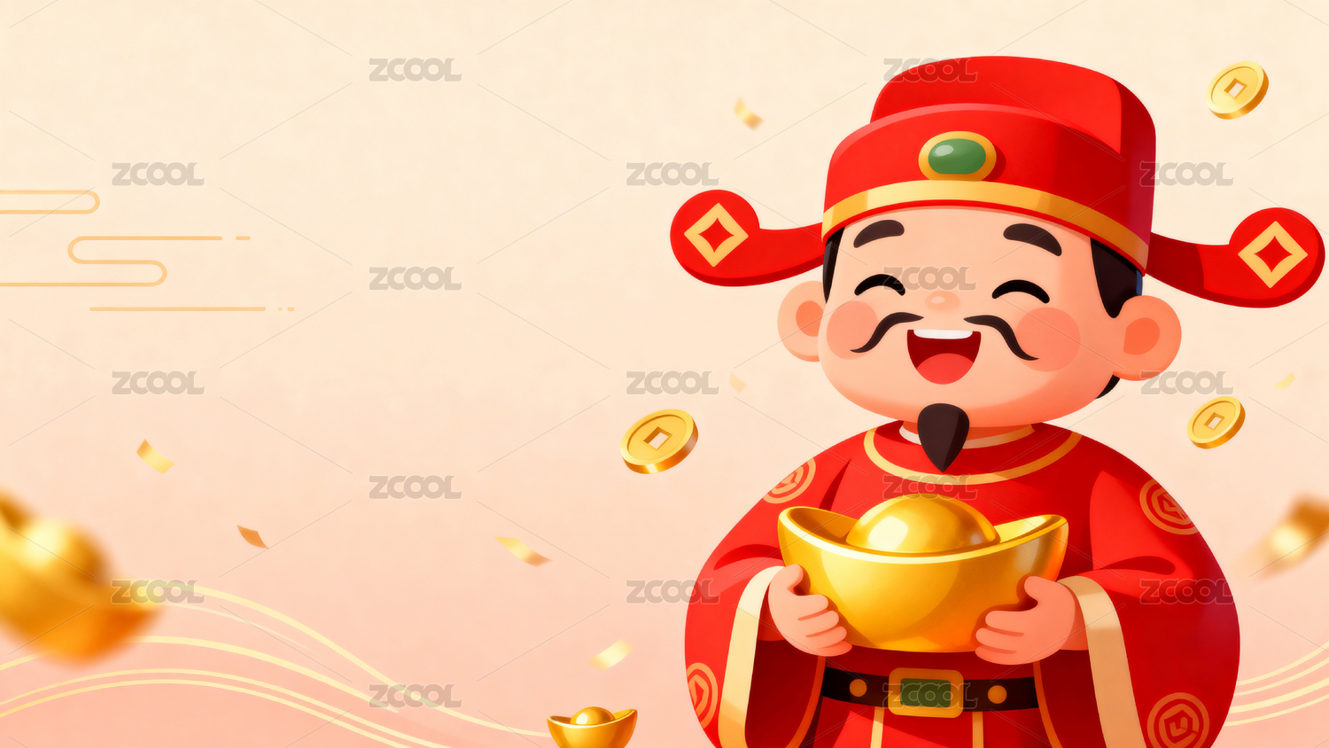 财神爷手持金币喜庆图案