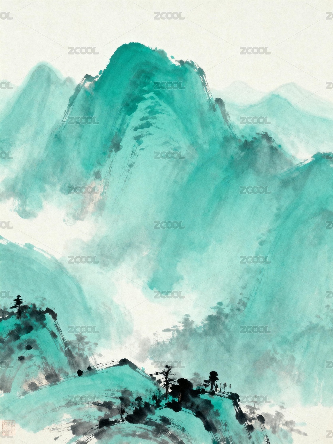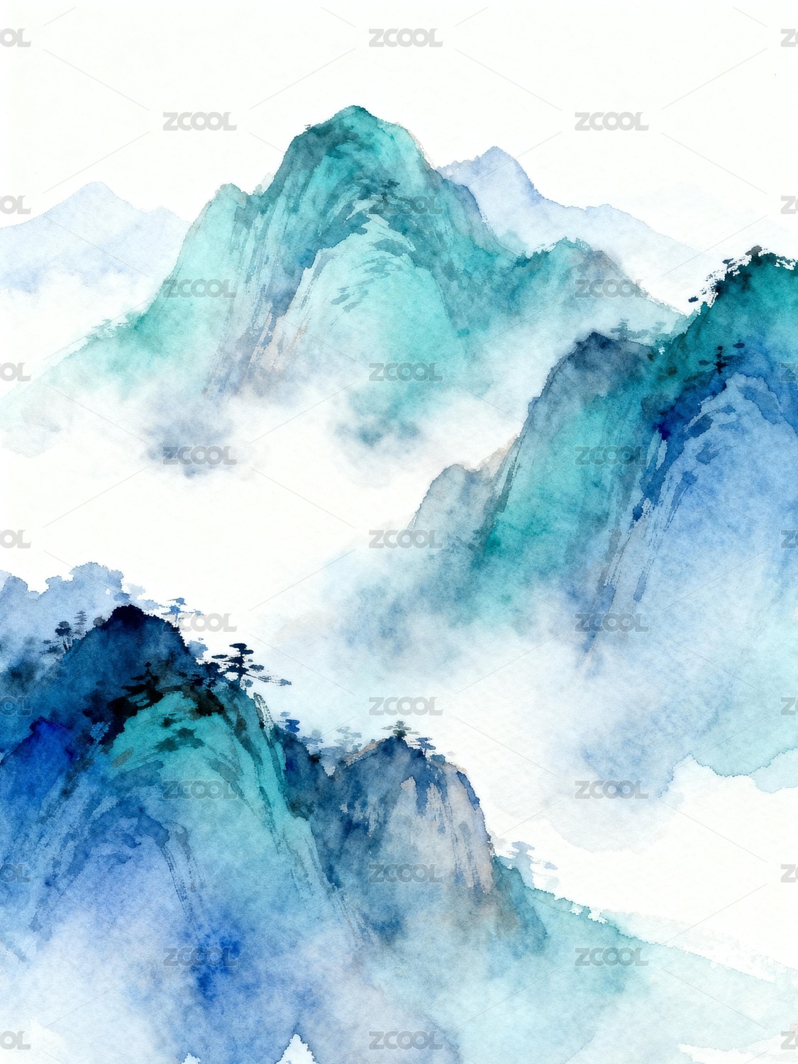 白色,艺术,水墨,云雾,树木,远山,淡雅,意境,自然,风景