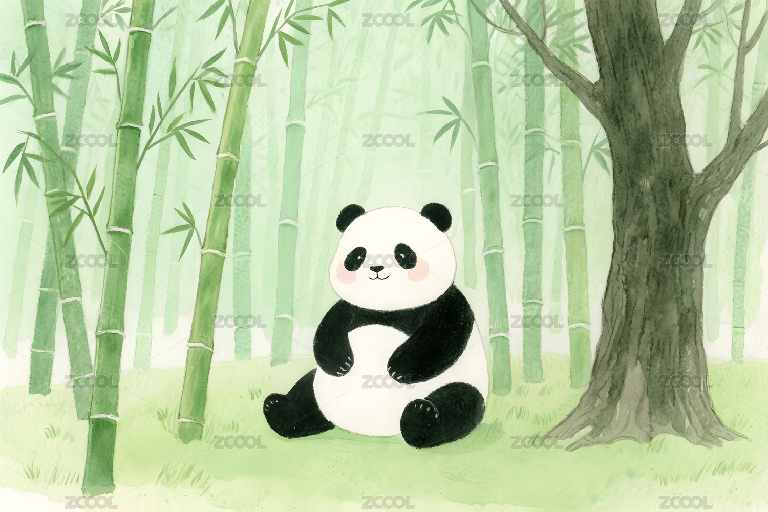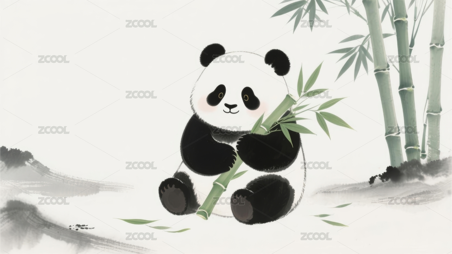 水墨熊猫雅致感竹林场景