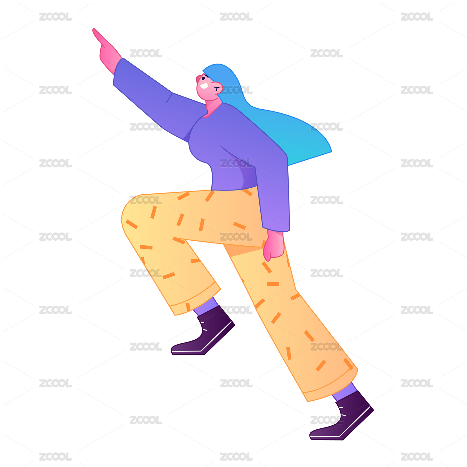 人物站姿肢体动作自信展示矢量扁平渐变插画