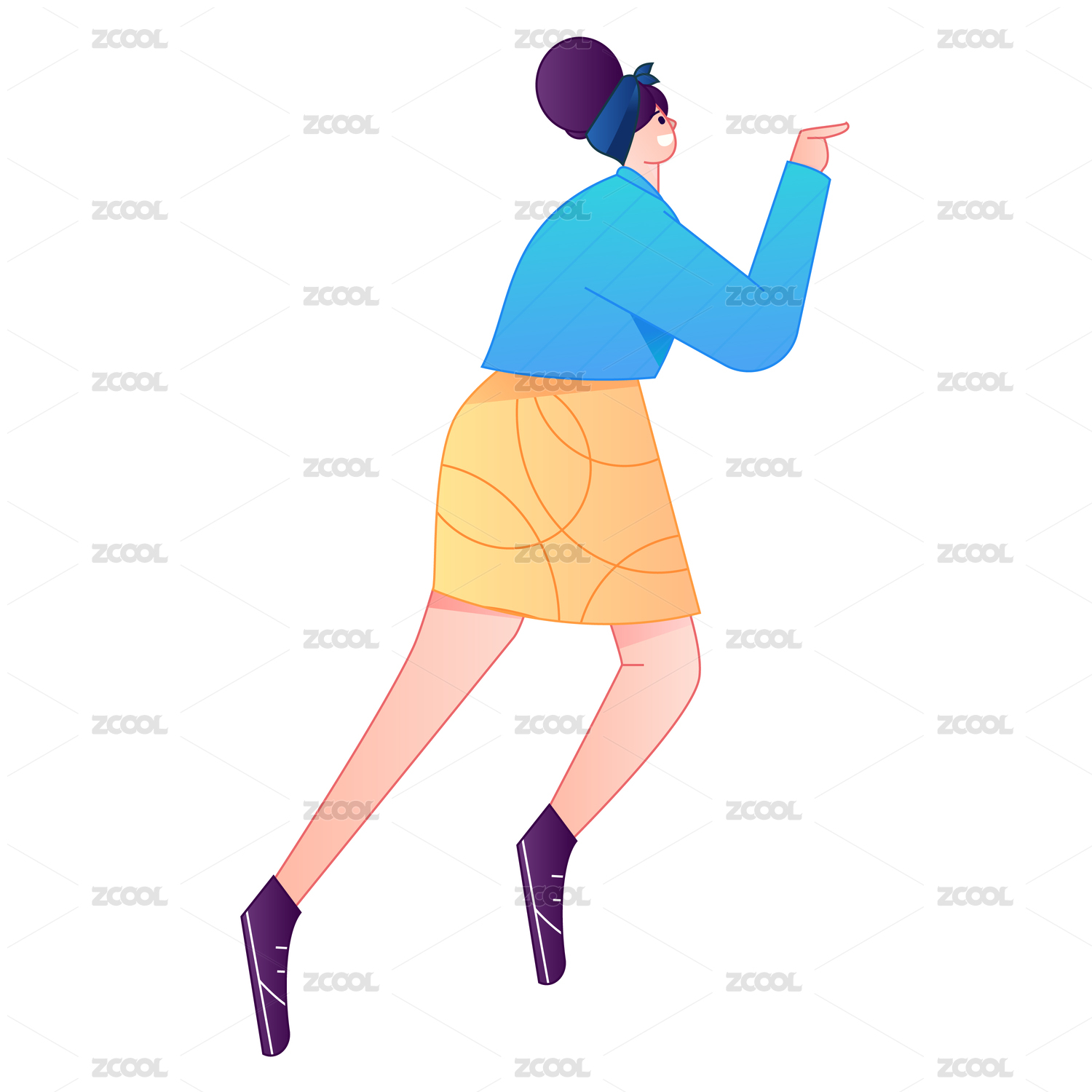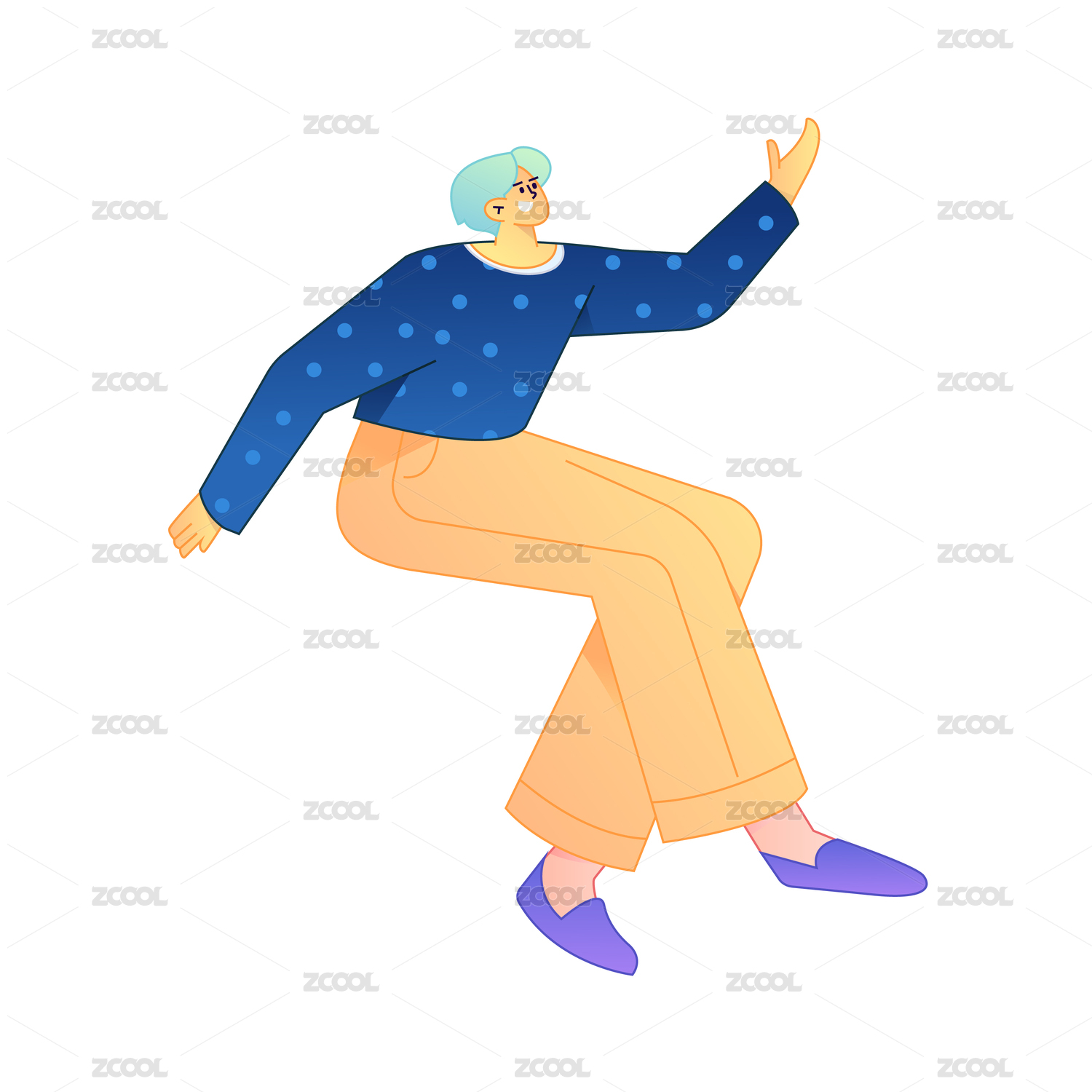 人物飞翔悬浮动作矢量扁平渐变插画
