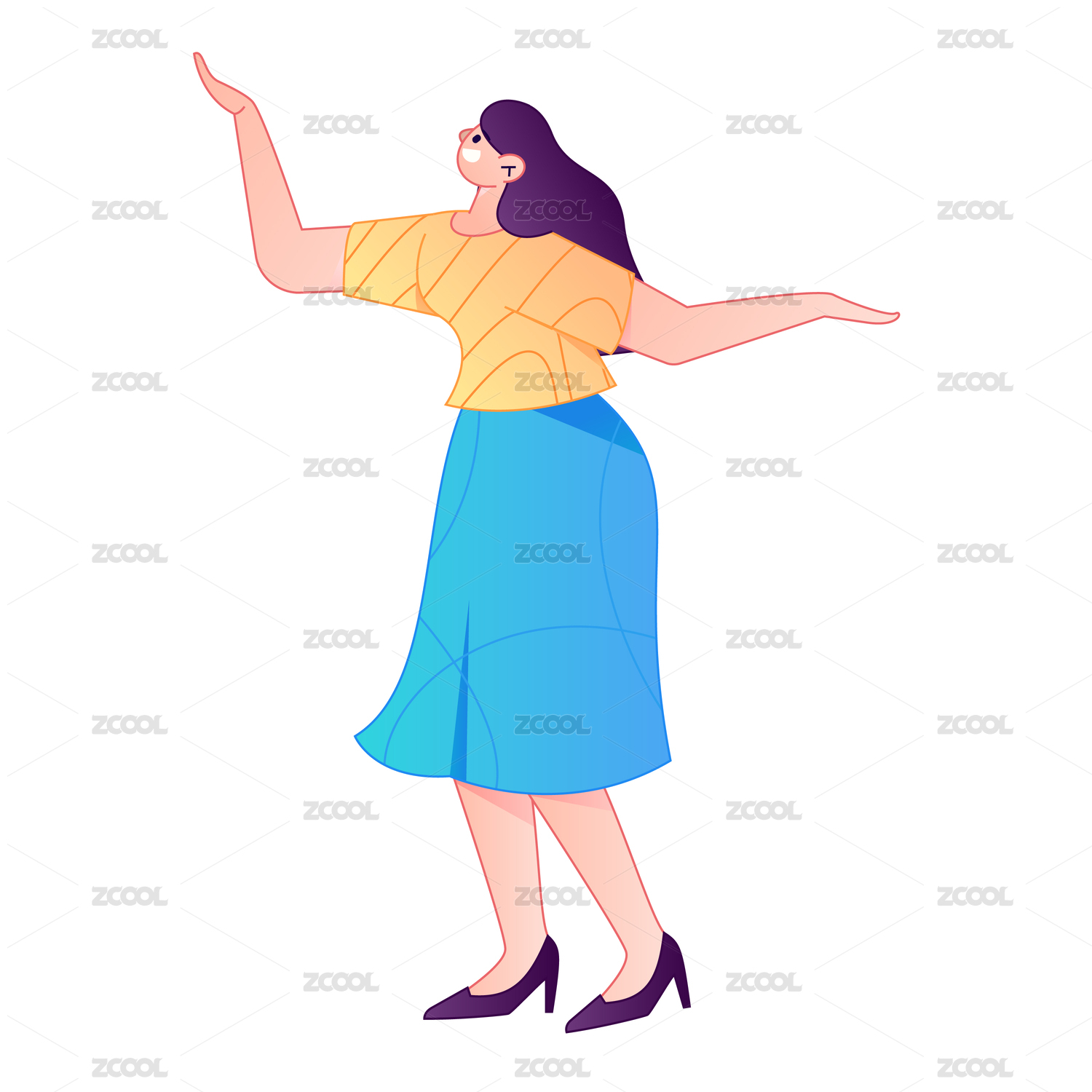 人物站姿肢体动作自信展示矢量扁平渐变插画