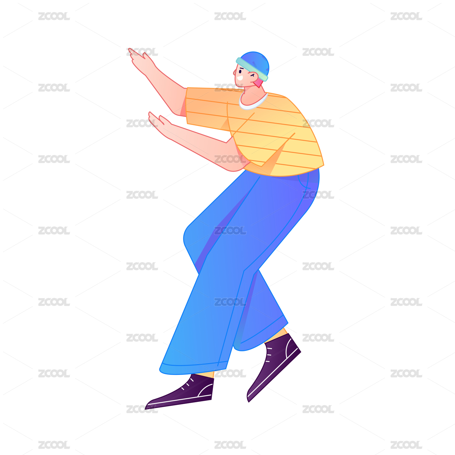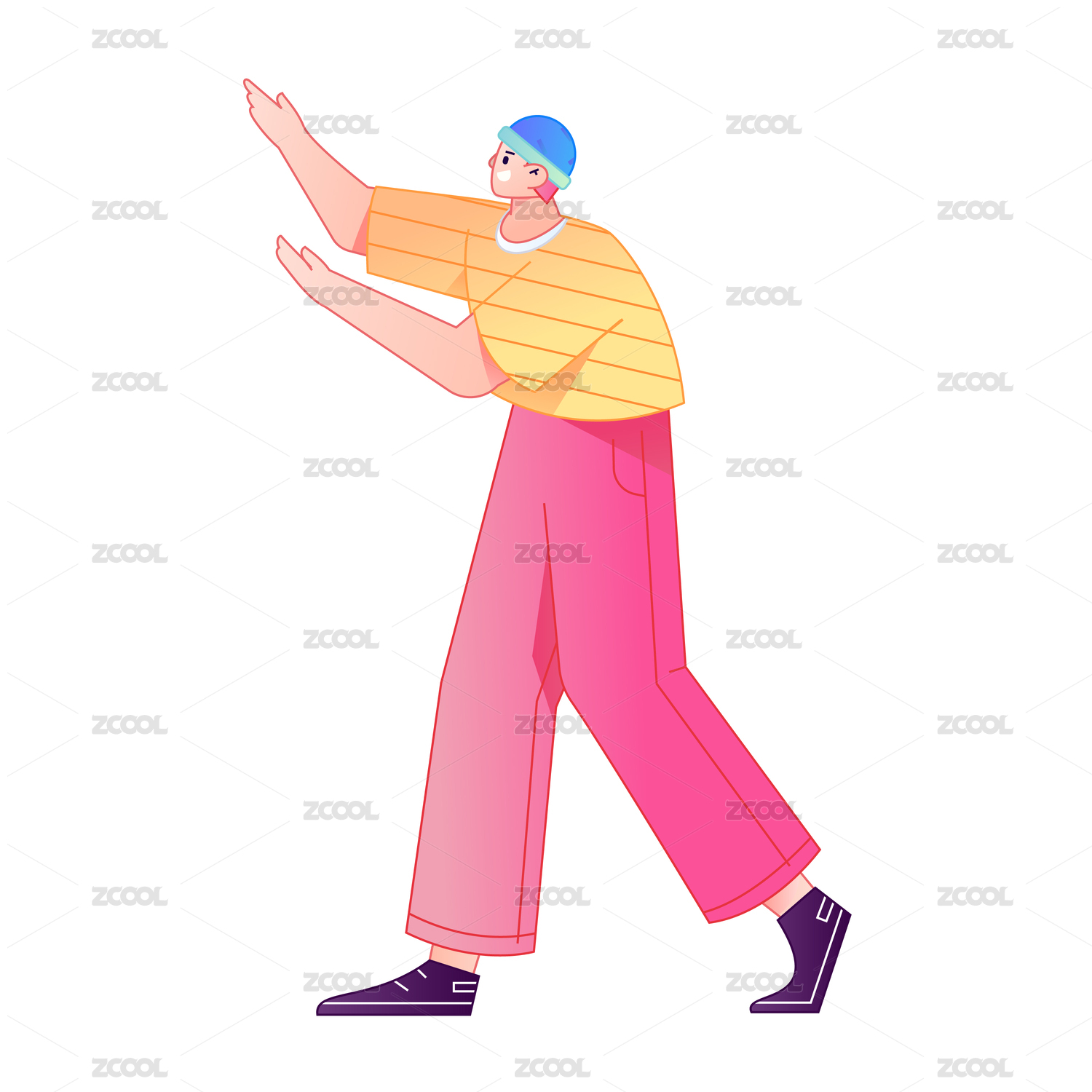 人物站姿肢体动作自信展示矢量扁平渐变插画