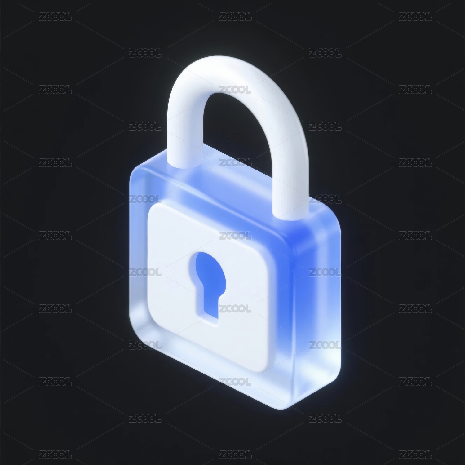 蓝色3D立体风安全锁锁孔玻璃锁头元素