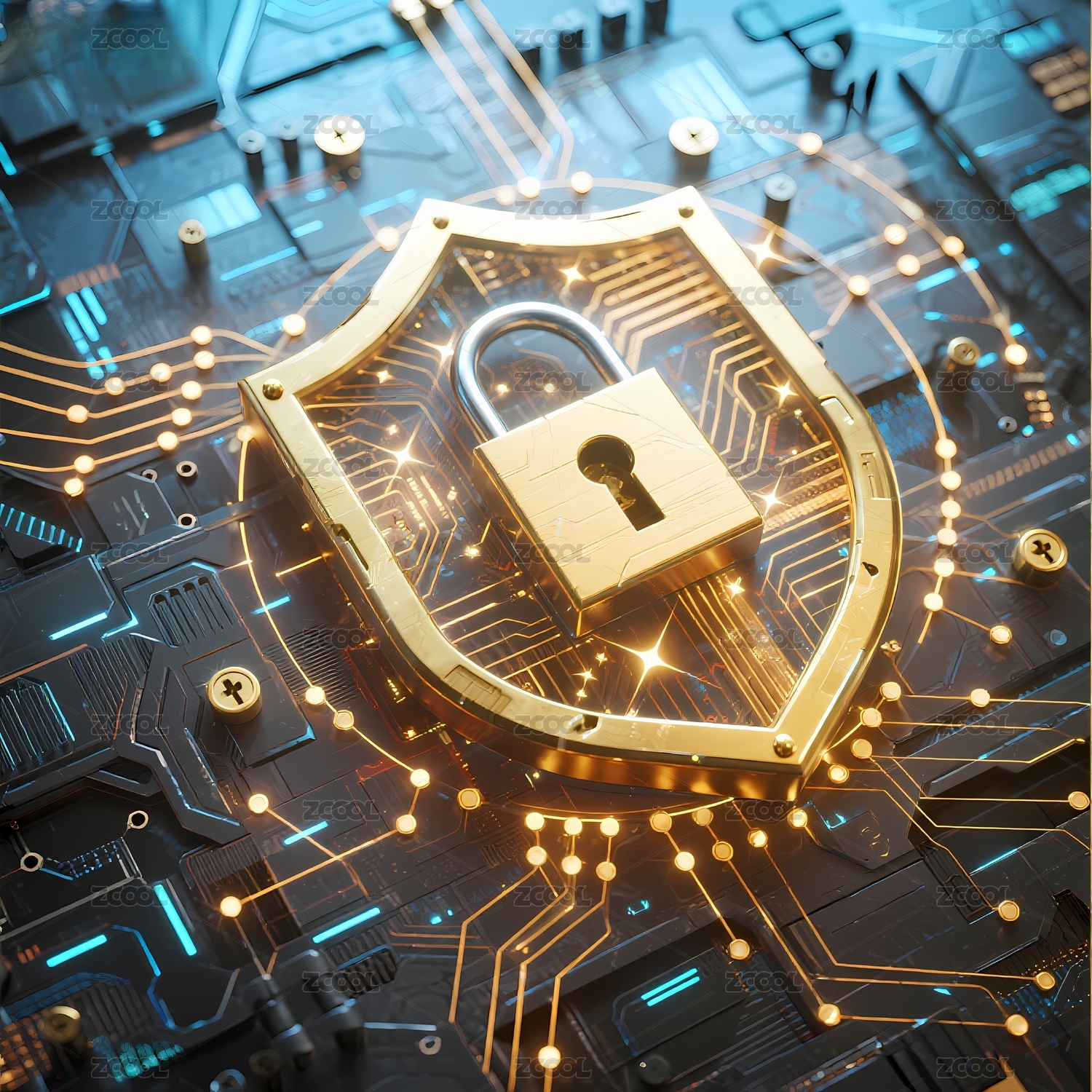 电路板上的金色锁盾