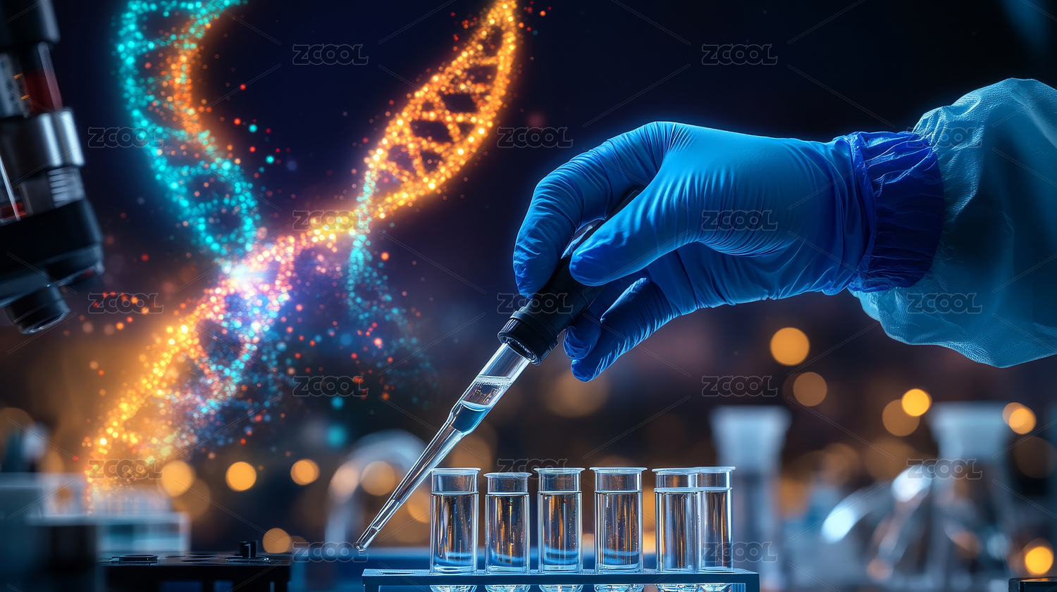 戴手套的手握着盛有蓝色液体的锥形瓶