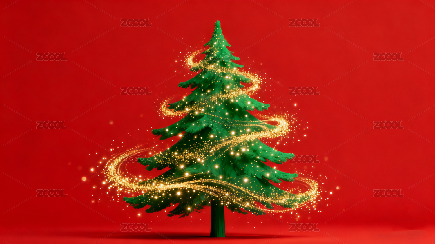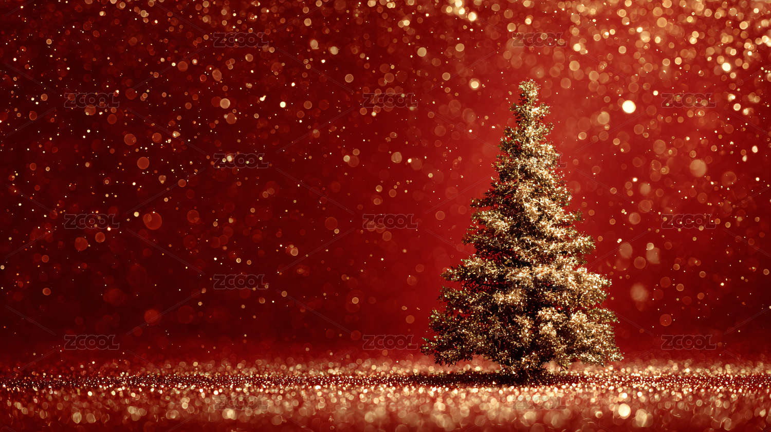 金色圣诞树红色背景