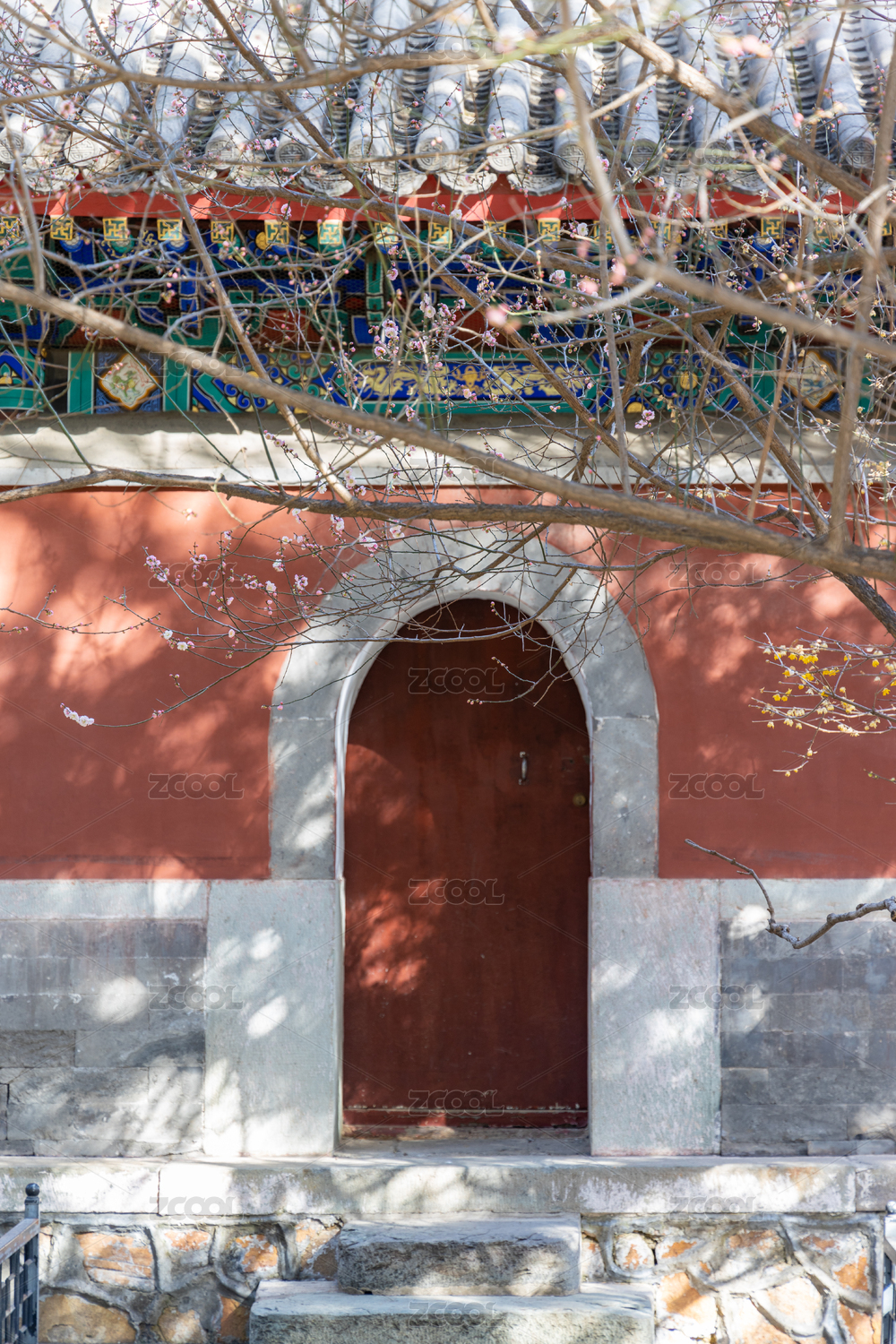 传统复古木门与台阶光影