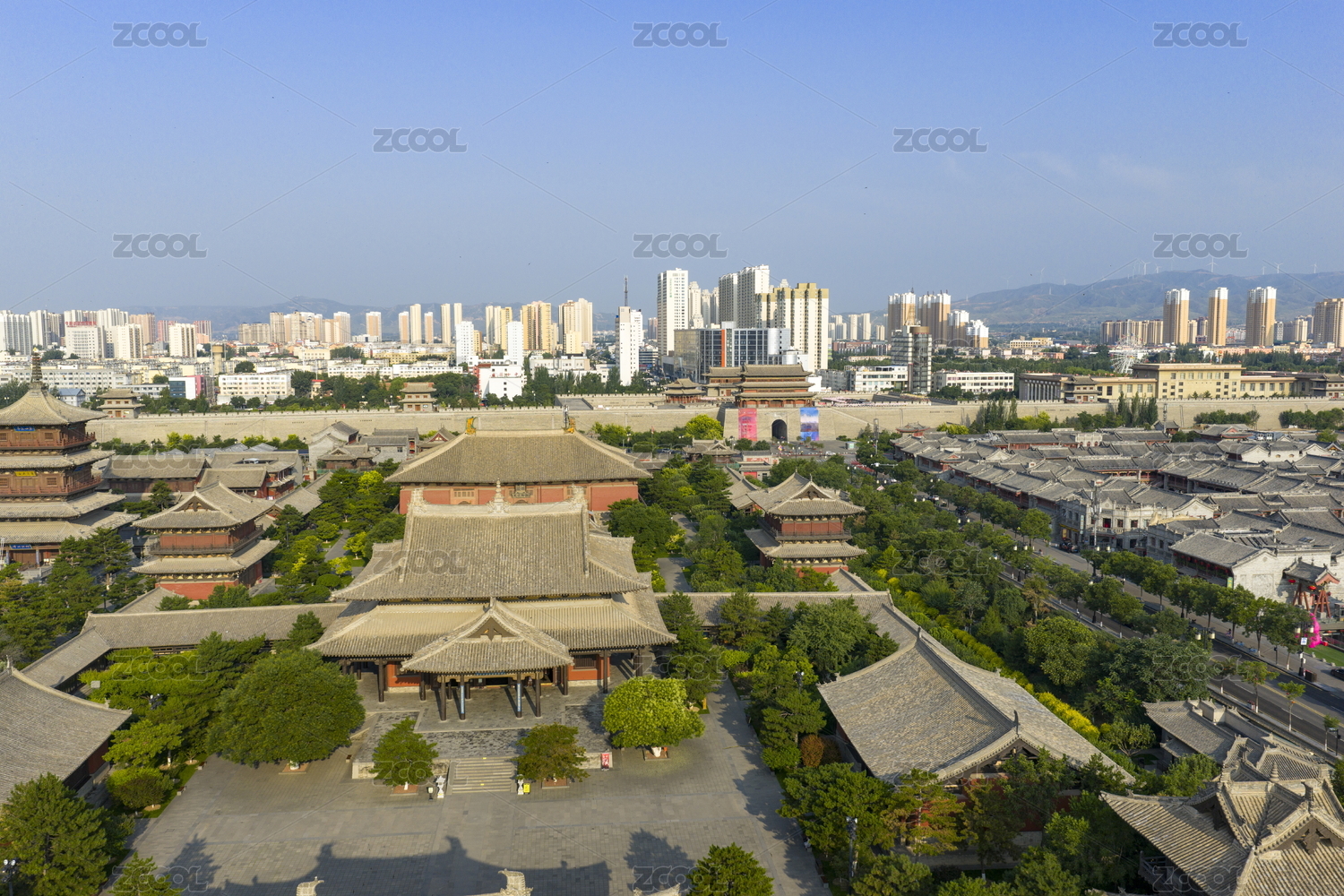 山西省,大同市,大同,古城,代王府,王府,航拍,高视角,旅游,景区