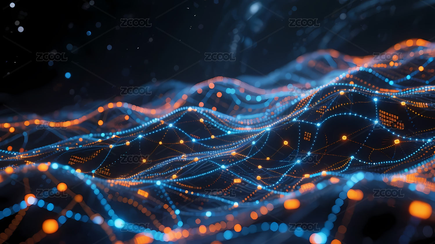 波浪起伏抽象山水灯带背景,科技曲线灯光