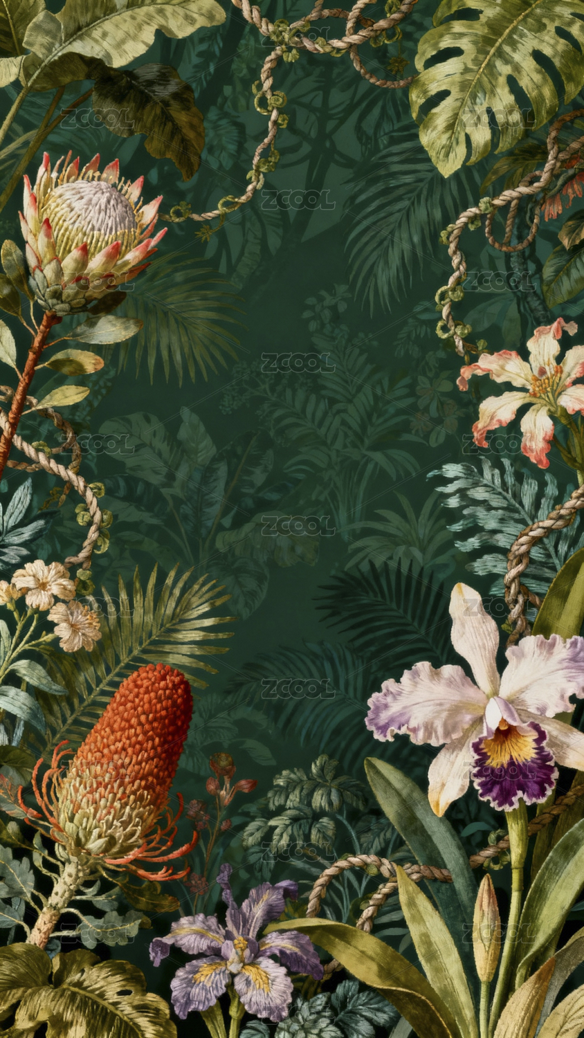 手绘,平面,插画,植物,野外,野趣,花卉,绿色,热带,精致